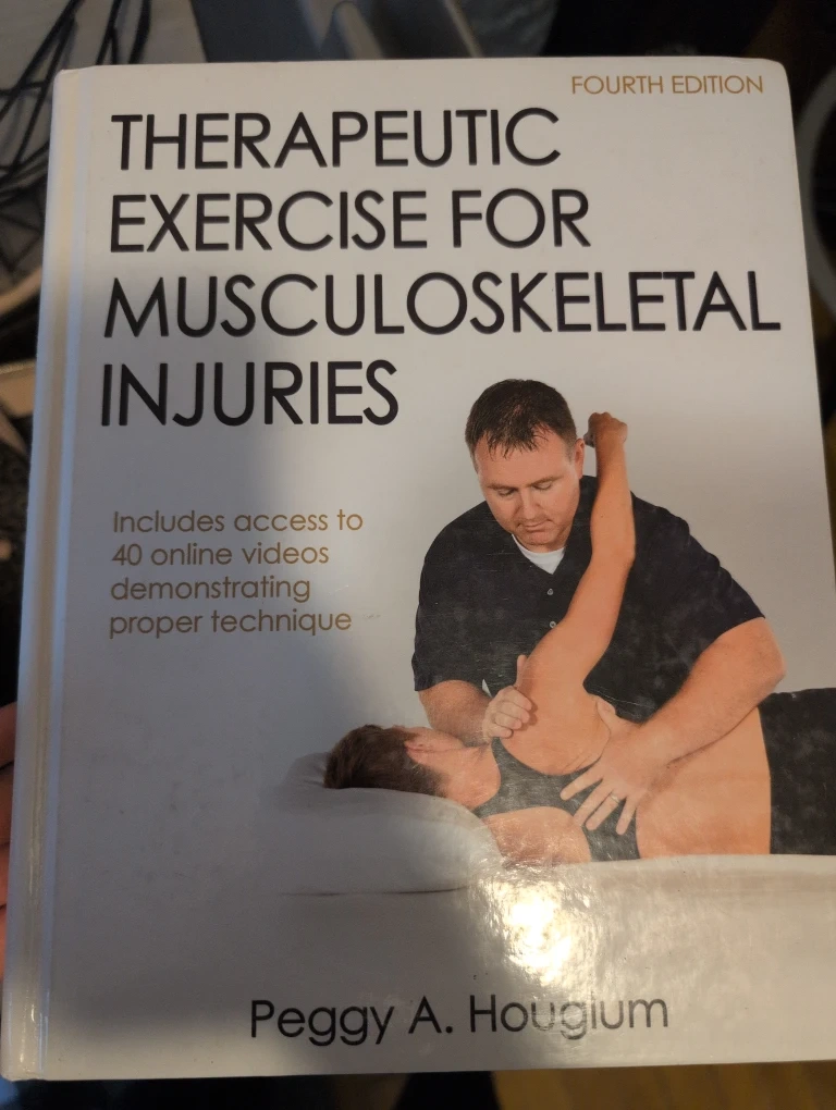 31Selling a copy of "Therapeutic Exercise for Musculoskeletal Injuries" by Peggy A. Hougium. This is the fourth edition and includes access to 40 online videos demonstrating proper technique. Great resource for anyone in physiotherapy or related fields!