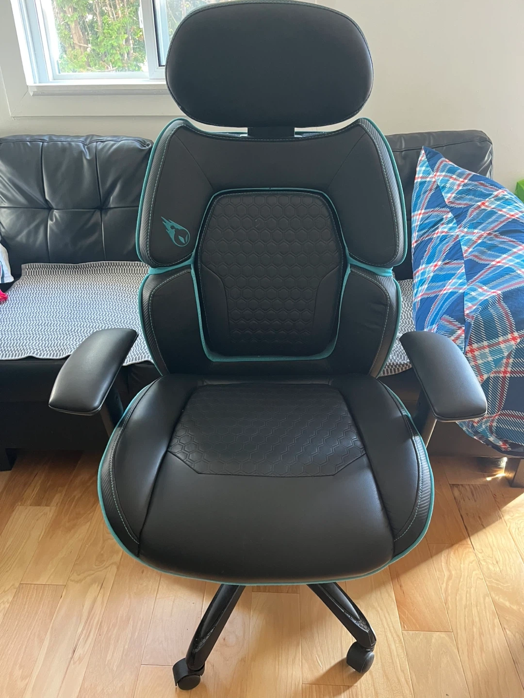 Selling a Thermaltake ARGENT E700 gaming chair in black with teal accents! It's in great shape and super comfy for those long gaming sessions or work days. The headrest provides excellent support, and the overall design is pretty sleek. A great addition to any setup!