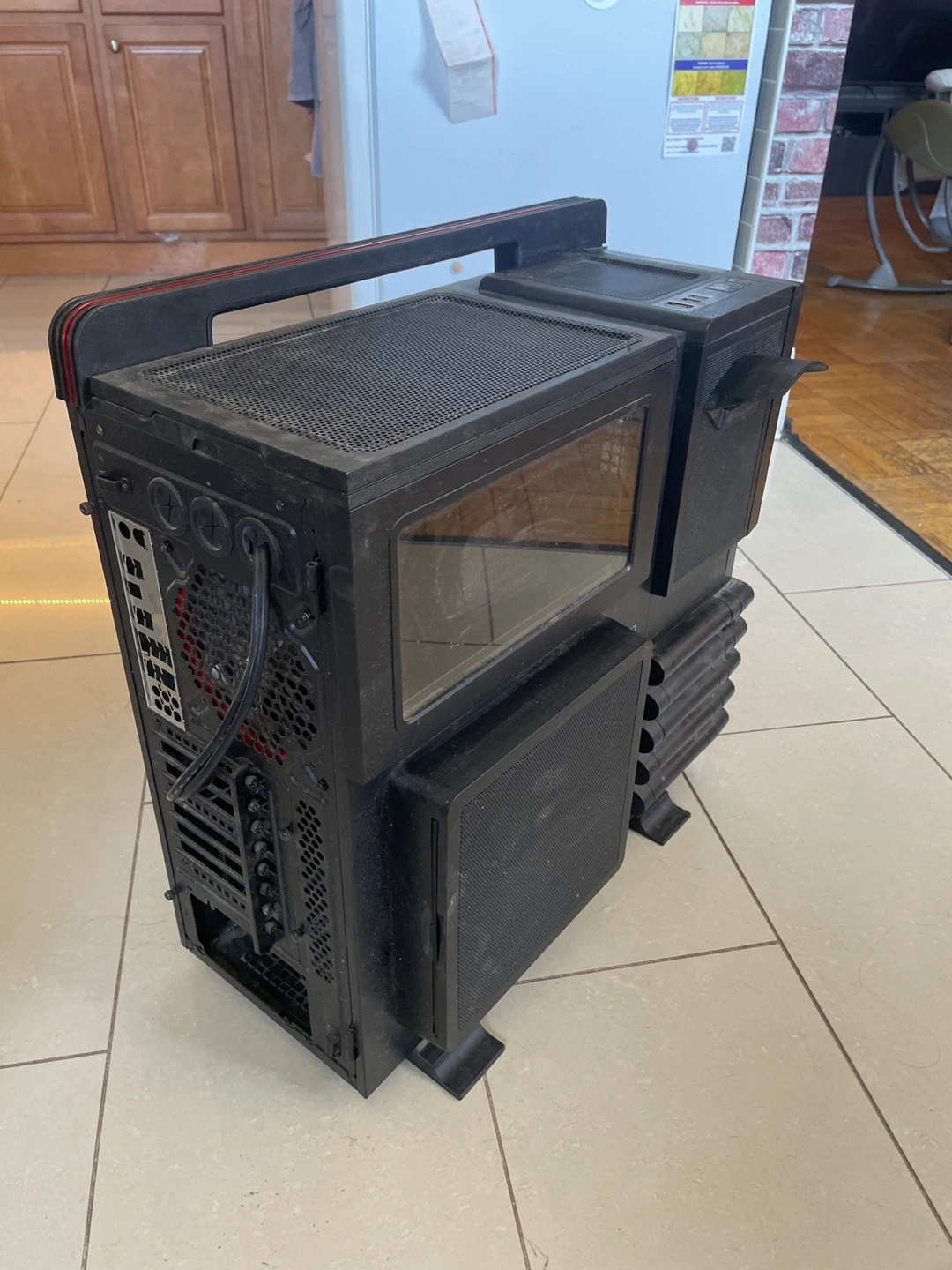 388Selling a Thermaltake Level 10 GT computer case. It's a full tower case with a unique design. The case is black and has a lot of space for components. It has a handle on top for easy transport. Perfect for a gaming rig or high-performance workstation! 21in × 22in × 10in
