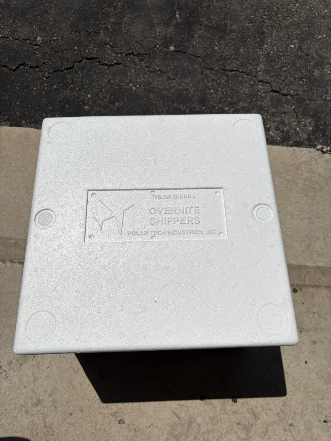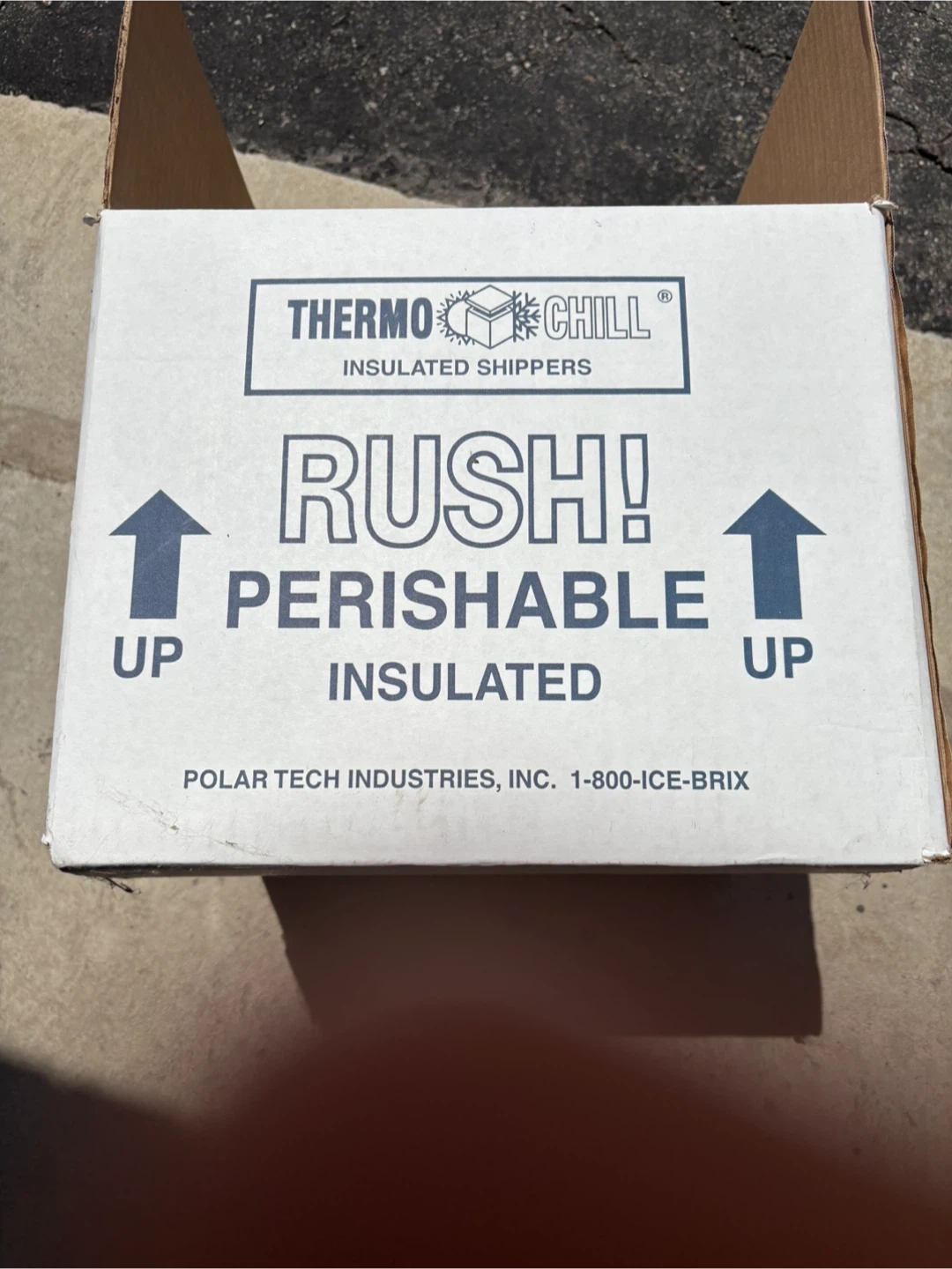 Selling a Thermo Chill insulated shipper. It's designed for overnight shipping and keeping perishable items cold. Perfect for sending temperature-sensitive goods!