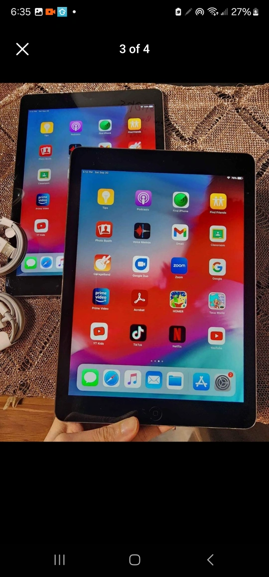These iPad Air are well-kept so they barely have any scratch. Like-New condition, working well. Battery lasts all day with normal use. Come with charging cables.