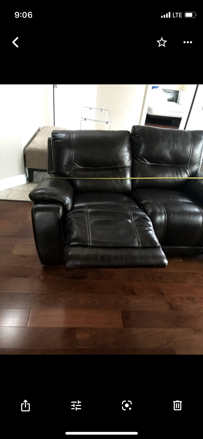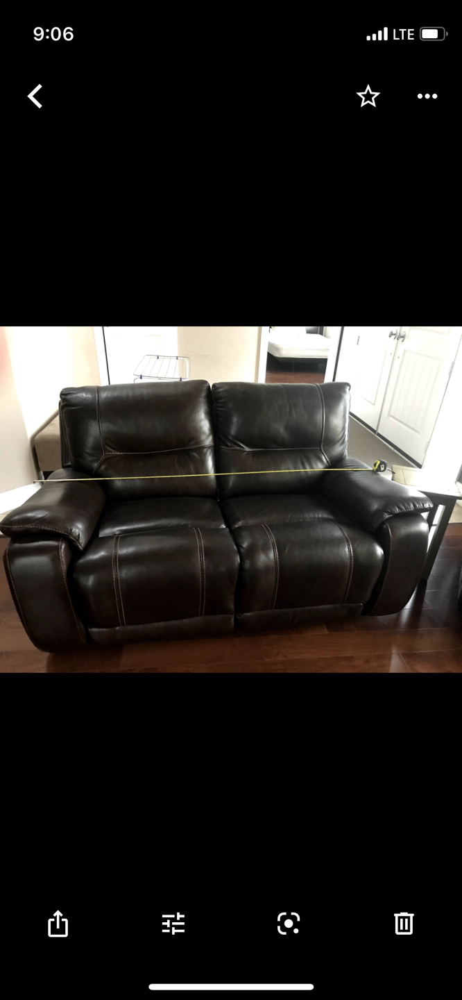 78Selling all 3 items together. 2 X Two Seater, 1 seater thick leather couches. All couches are lazy boys that allow you to Kick up your feet and extend all the way back to sleep. Excellent condition! Super heavy so you will need to have a big truck and great friends that will help move! Approx measurements: Smaller love seat Lx62” Bigger love seat Lx82” Individual seat Lx42” All seats Wx35” All seats Hx 38”