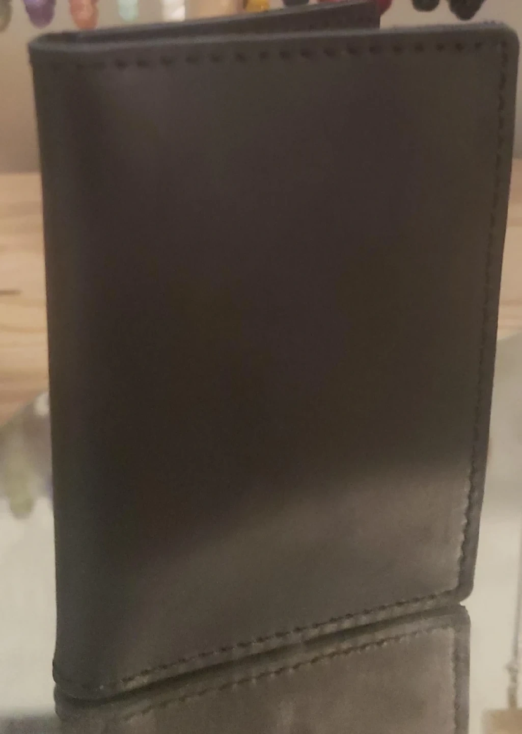 65Selling a black, genuine leather wallet. It's in mint condition and has a classic, simple design. Perfect for everyday use!