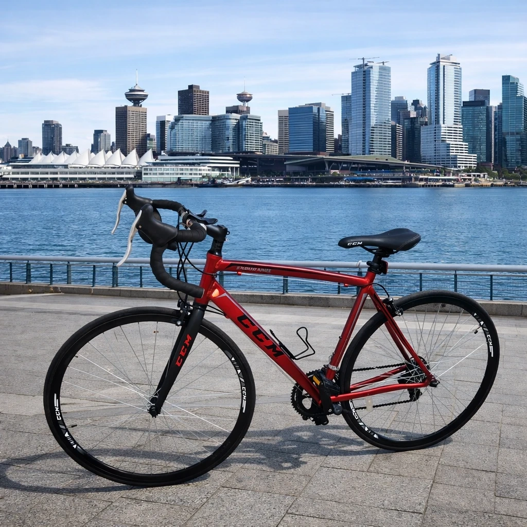 This CCM road bike is a great choice for cycling. It features a lightweight frame and is perfect for getting around town or going for a ride. The bike is red and comes with a water bottle cage.