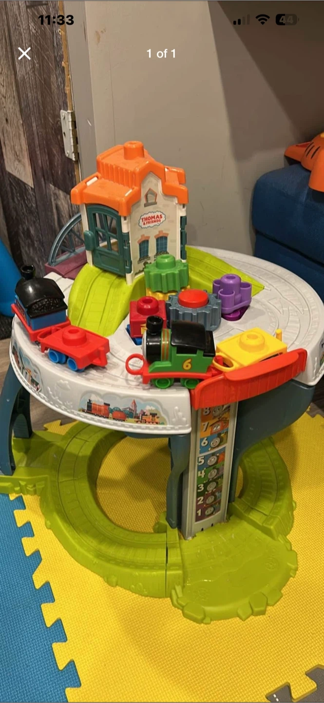 Gently used Thomas & Friends Railway Pals Roundhouse. This interactive playset is perfect for toddlers and preschoolers who love trains! Includes Thomas and Percy trains and a few other pieces.