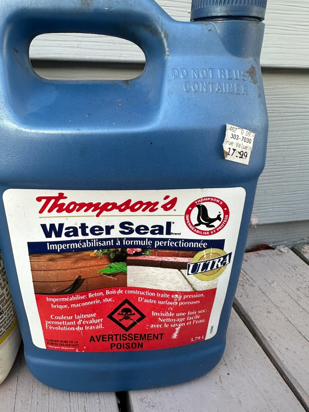 101All for 25$ 4 cans 3 new Thompson's Water Seal Ultra in a 3.79L container. Protect your wood surfaces with this waterproofer