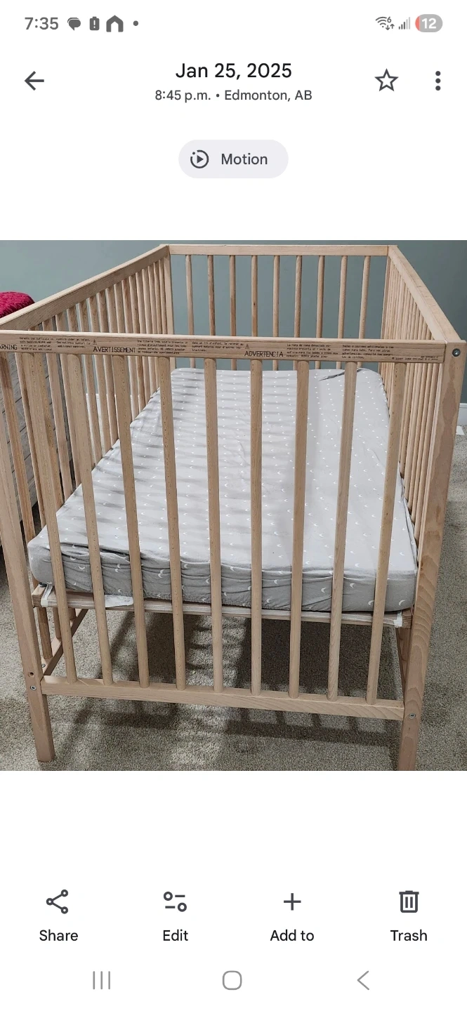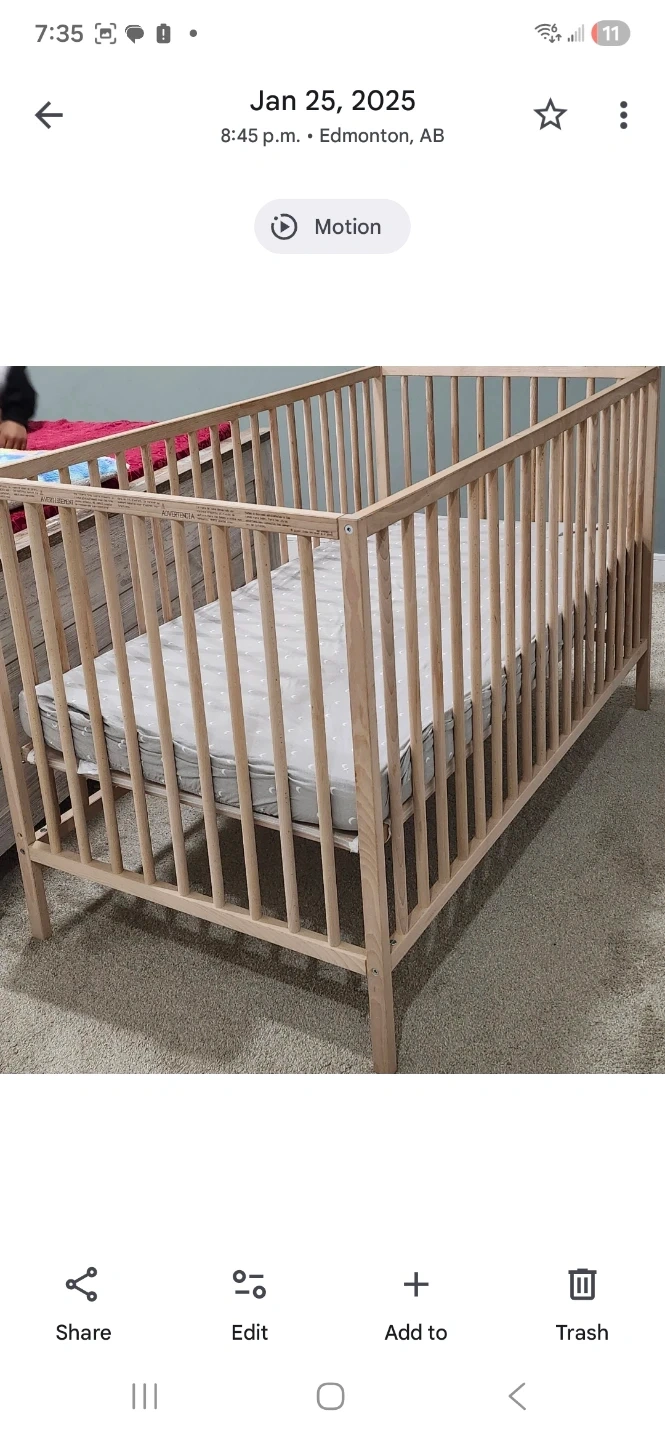 This wooden crib comes with a mattress. It's a sturdy and safe option for your little one. Provides a cozy sleeping space for babies.