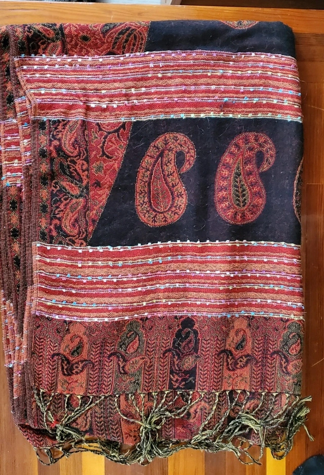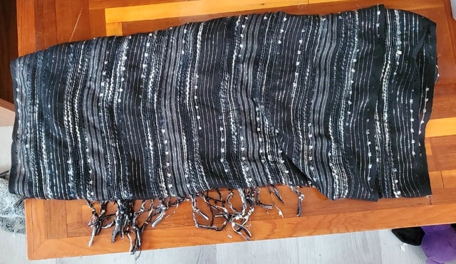 159Collection of three lovely shawls! Perfect for any occasion! These are beautifully crafted shawls with some intense patterns. They can easily be used as a shawl or a scarf. They have versatile styles and are soft. I believe that they would be comforting for yourself or as a perfect gift. Ideal for birthdays, holidays, or special occasions. They have been put away for some time; however, we do live in a household with pets. If you have allergies to cats or dogs I would suggest giving the shawls a good wash before wearing them. Cash and cashless payments accepted.
