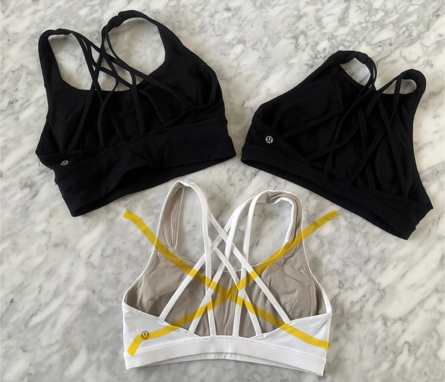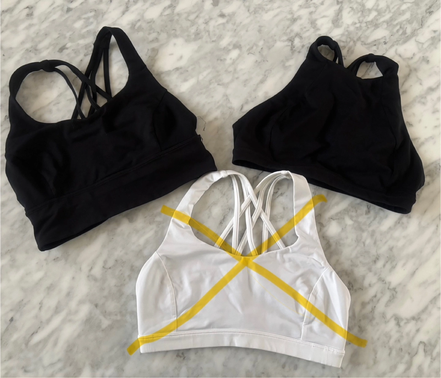 100Bundle of three Lululemon sports bras. Two black and one white. Great for yoga or workouts. Free to Be Bra - Various styles Black High Neck - Size 6 Black Long - Size 6 White - Sold $10 each