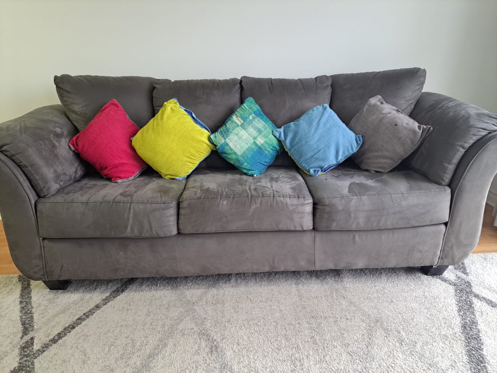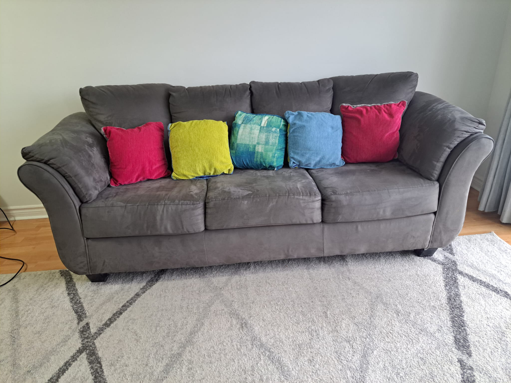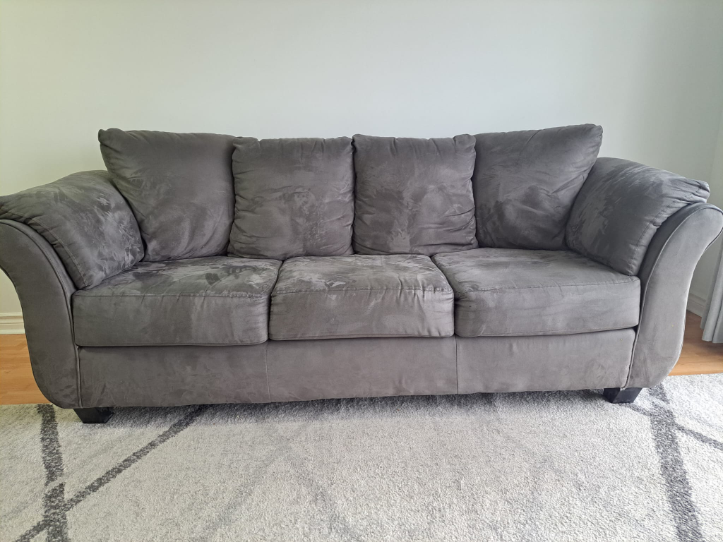 39Three seater sofa bought from Leon's in 2019, canadian made and is in good condition. Leon's link: https://www.leons.ca/products/collier-sofa-dark-grey