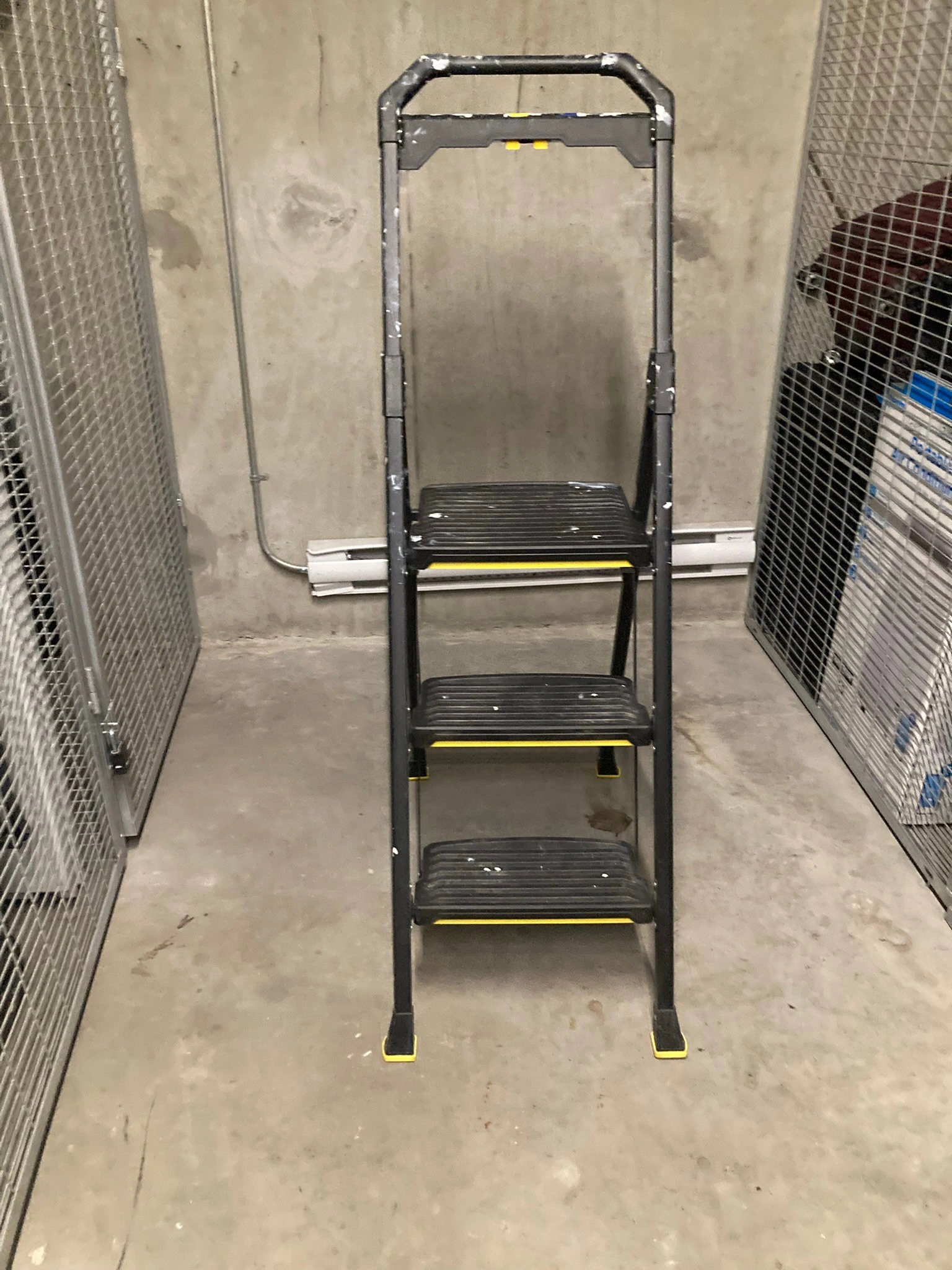 5This is a very sturdy and stable three-step ladder that has been very useful for DIY projects. I'm only selling this one because I have another of the same height. So, I'm getting rid of duplicates that I don't need anymore. On the photos, you can see the ladder has paint stains from a past paint job. Other than that, the ladder is in very good conditions. Cash only Pick-up only