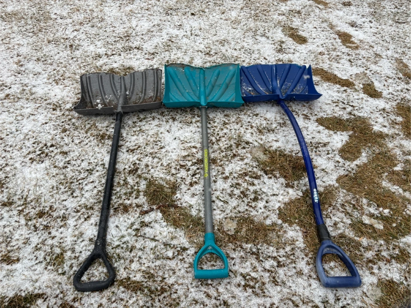 105Selling three snow shovels in used condition. There's one in blue, one in teal, and one in grey. They've been used, so they have some wear and tear, but they're still good for clearing snow this winter. 6$ for each one, Pick up at Morley trail NW