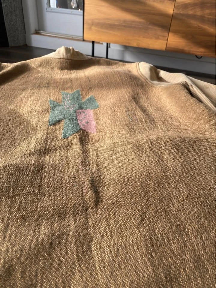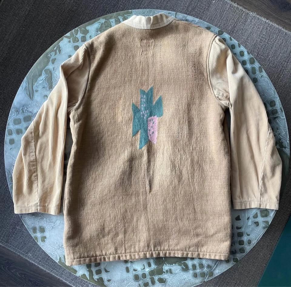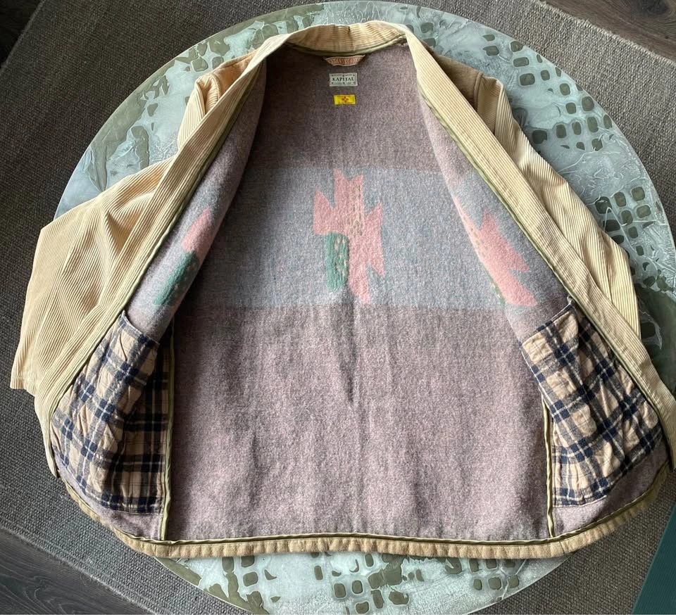 Kapital Kountry jacket with detailed stitched patterns, corduroy sleeves and trim. Features 2 pockets on seams, and 2 pockets inside. Purchased in Tokyo. Sizing is men's L. As new, excellent condition.