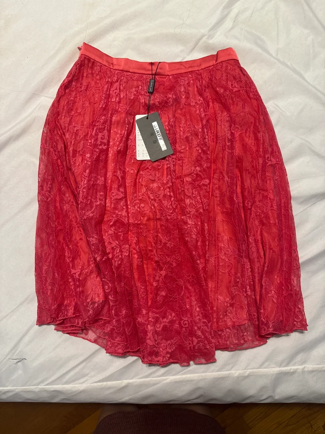 This is a GIRDEAR hot pink lace skirt. It's in great condition and ready for a new owner! Ready for pickup and cash preferred.