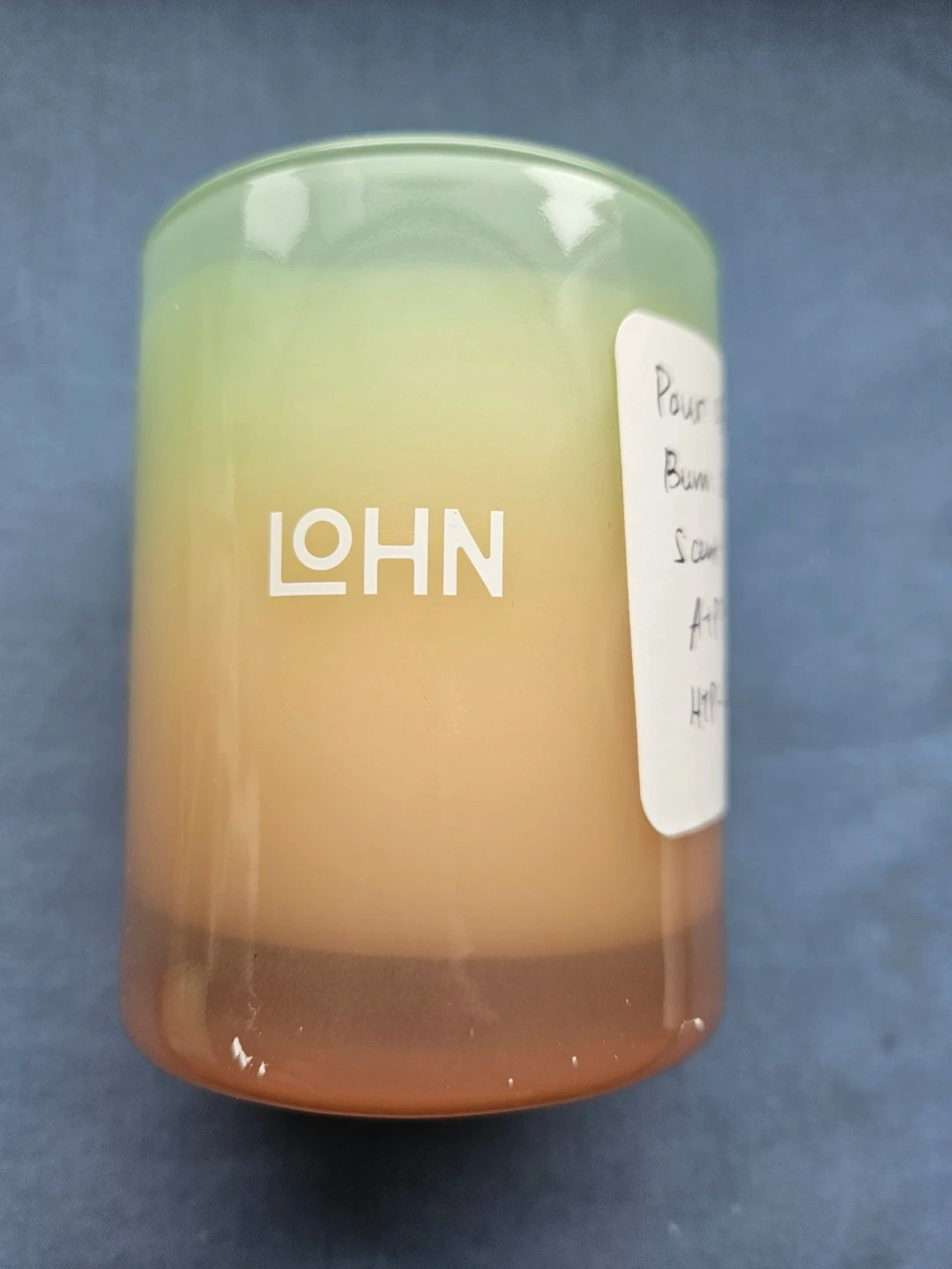 Coconut and soy wax. Brand new, bought at factory sale. 7.5 oz. Retails for $48.