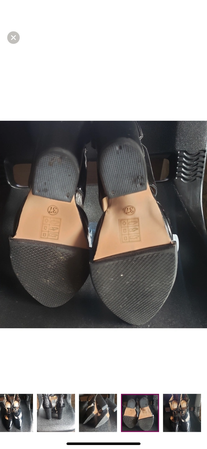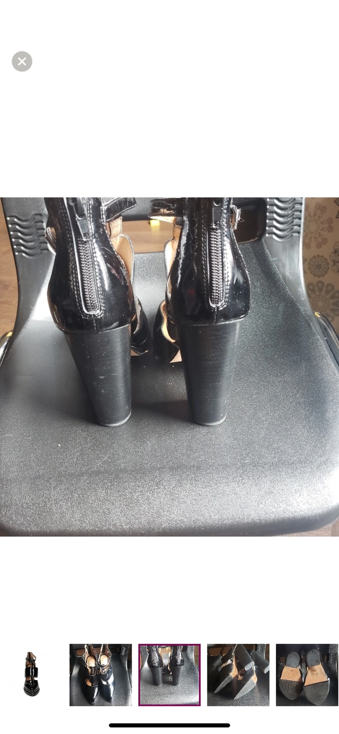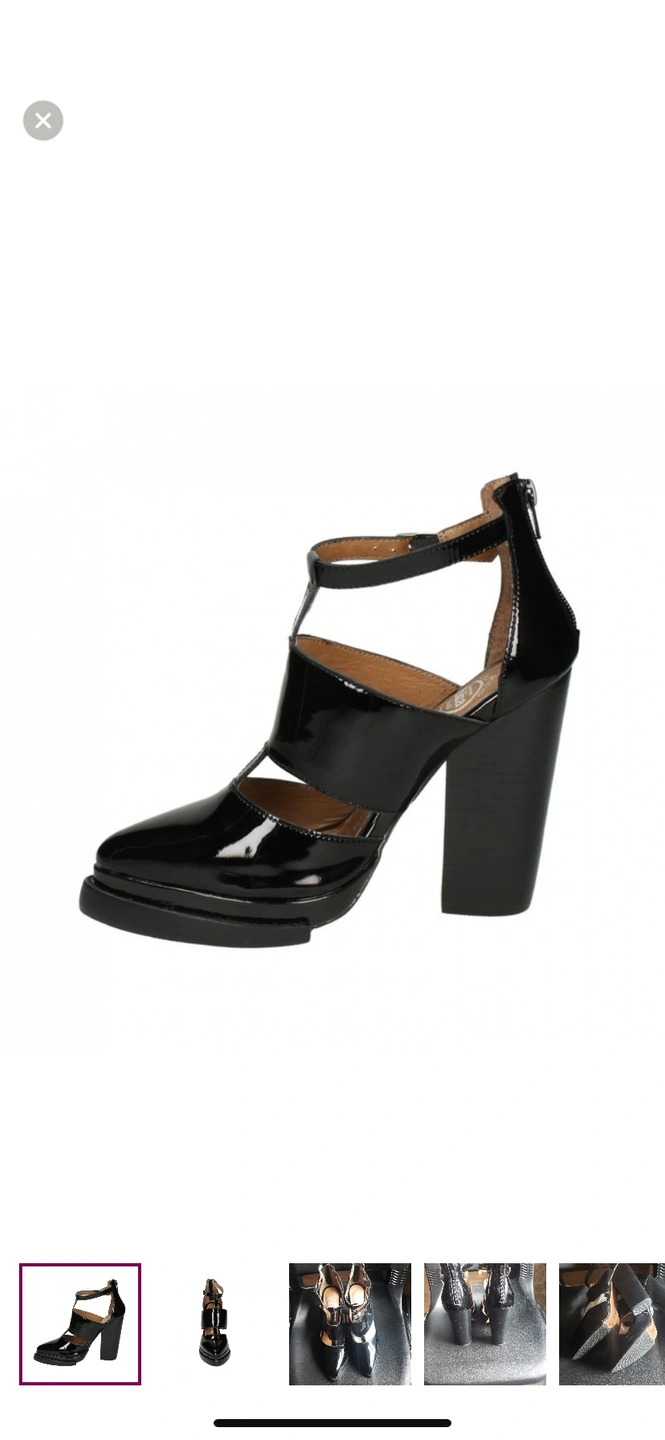 Gorgeous Jeffrey Campbell Black patent leather heels with a chunky heel. Ankle strap with buckle closure.
