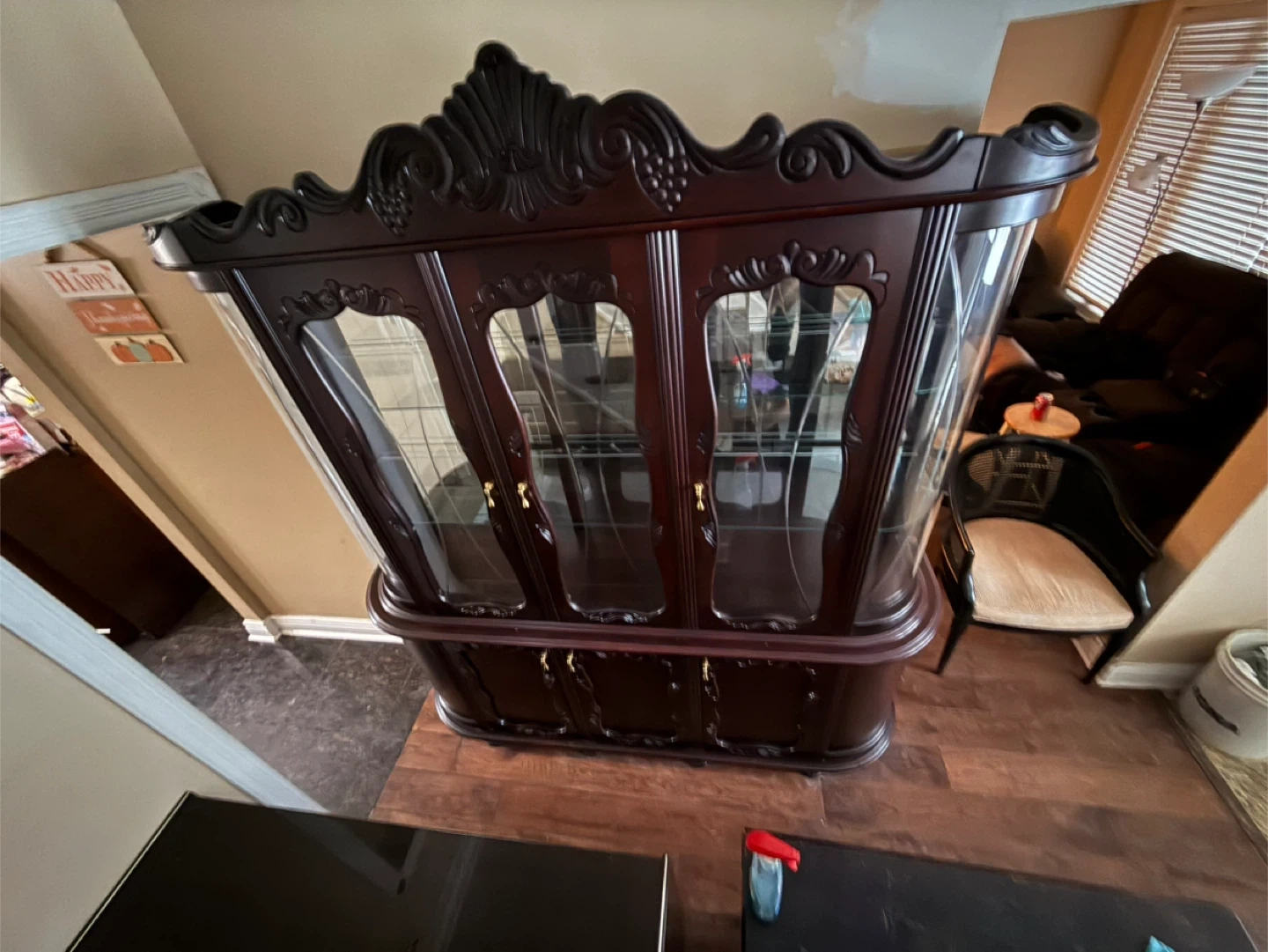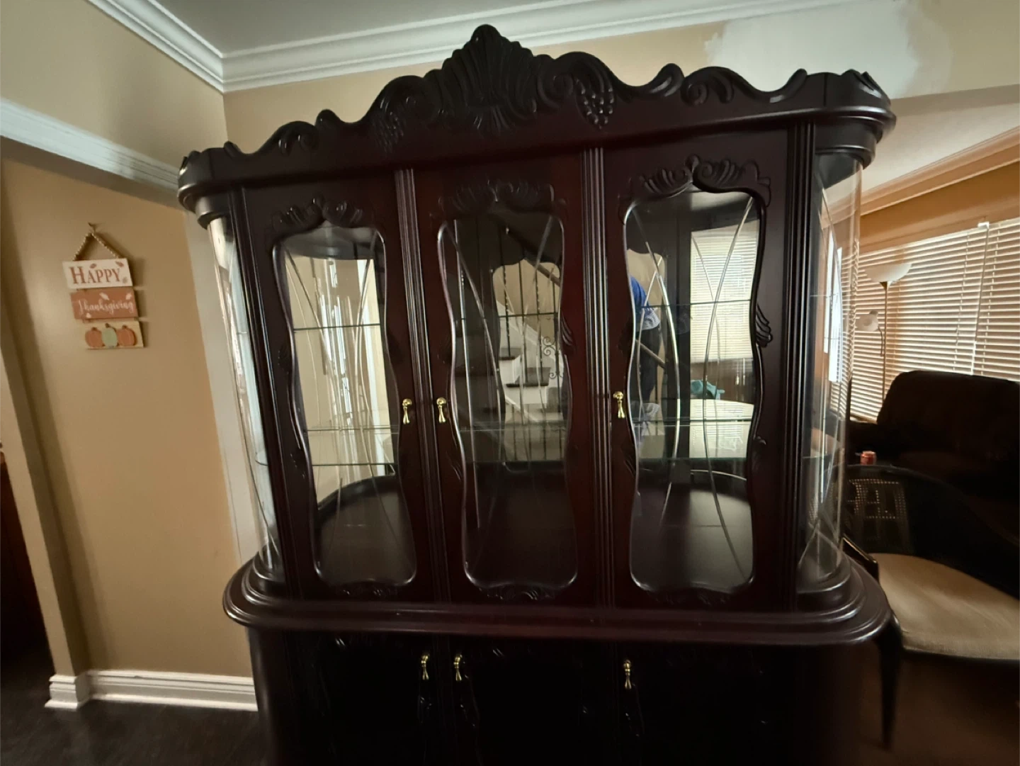 Dark Wood China Cabinet with Glass Doors