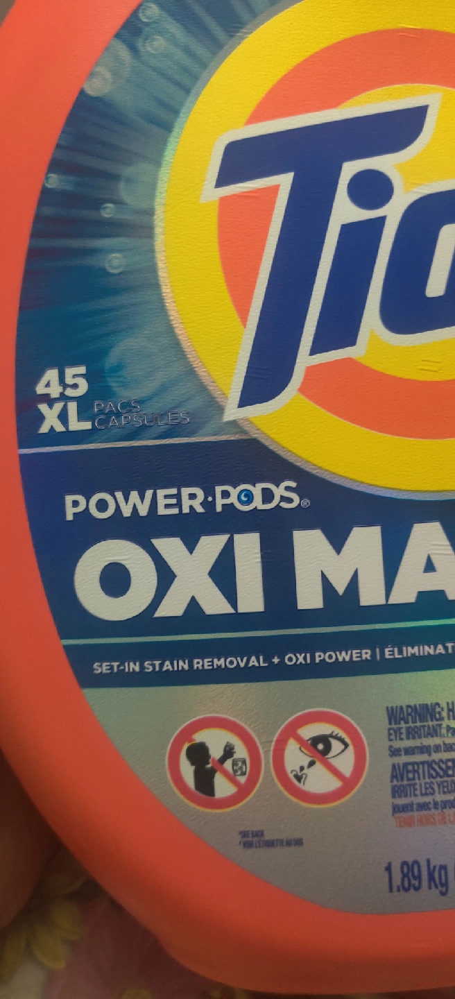 1000+Selling a container of Tide Power Pods Oxi Max. This container has 45 XL capsules. Great for set-in stain removal and has Oxi power!