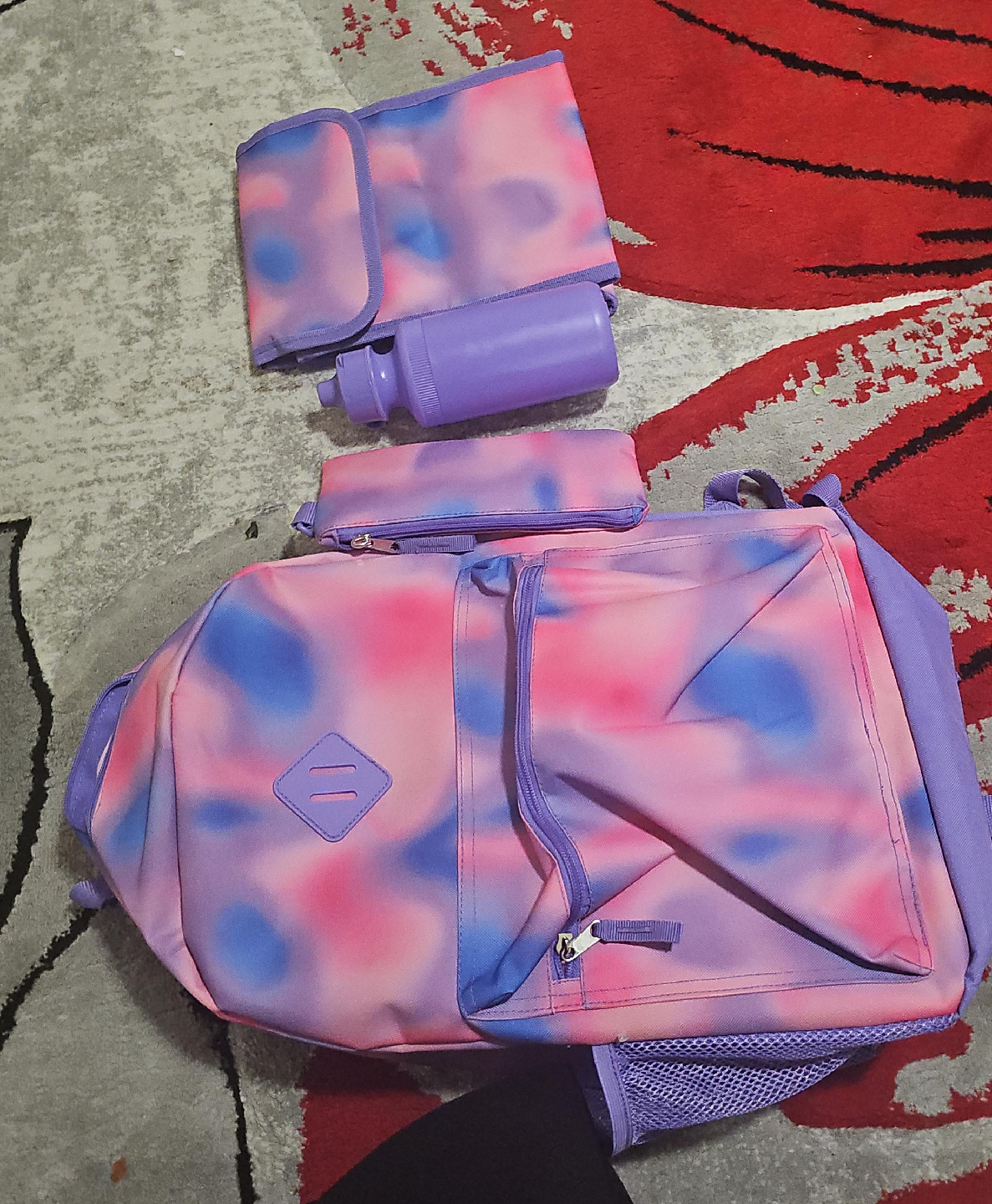 Selling a cute tie-dye backpack set! It comes with the backpack, a matching lunch bag, a pencil case, and a water bottle. Perfect for school or travel! and brand new