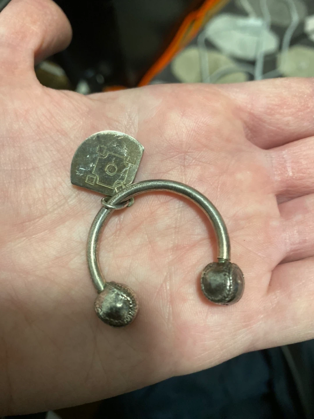 139Tiffany and Co sterling silver baseball keychain. It features a baseball diamond and baseballs on each end. Great piece for a baseball fan. Go jays!