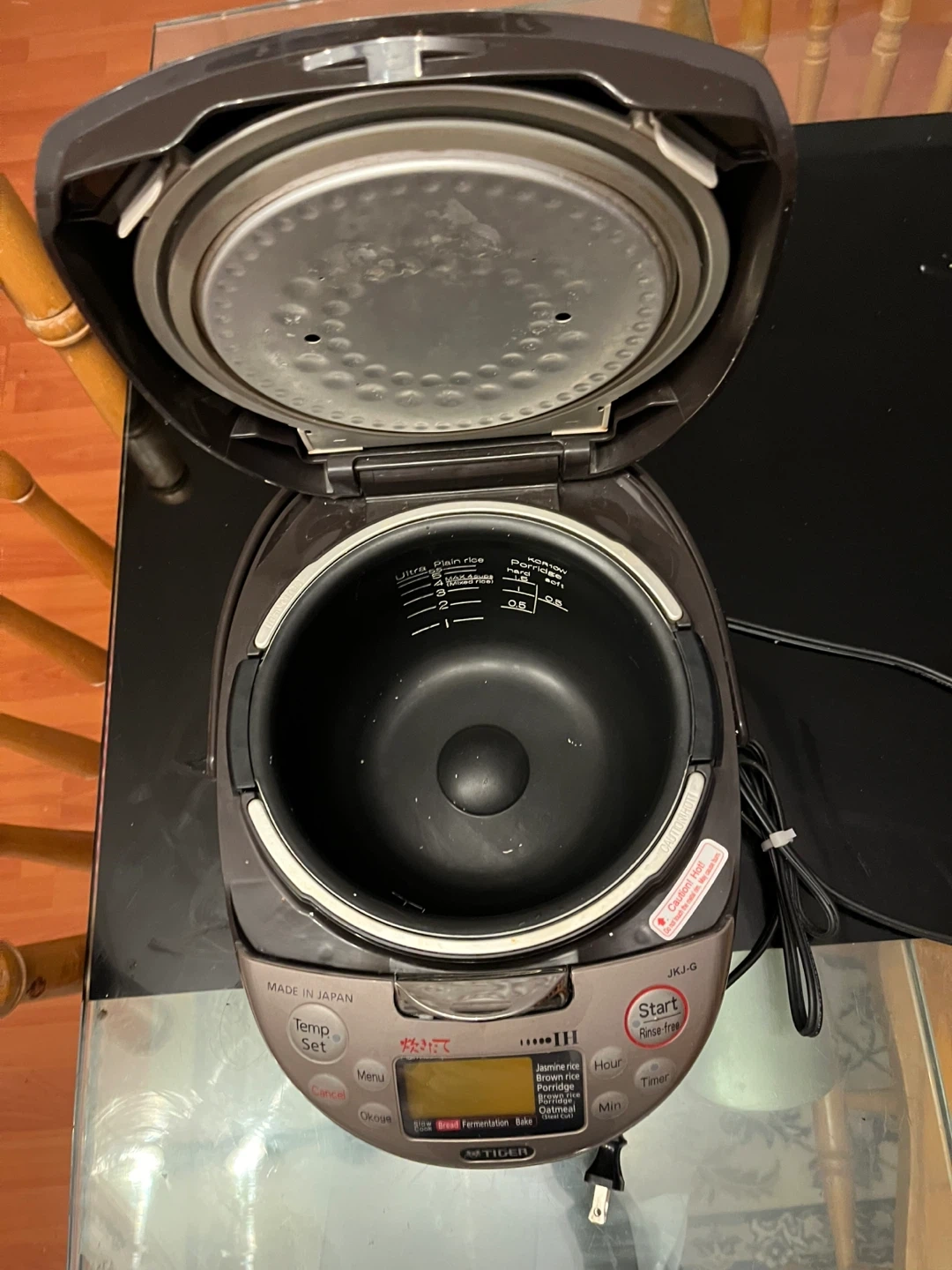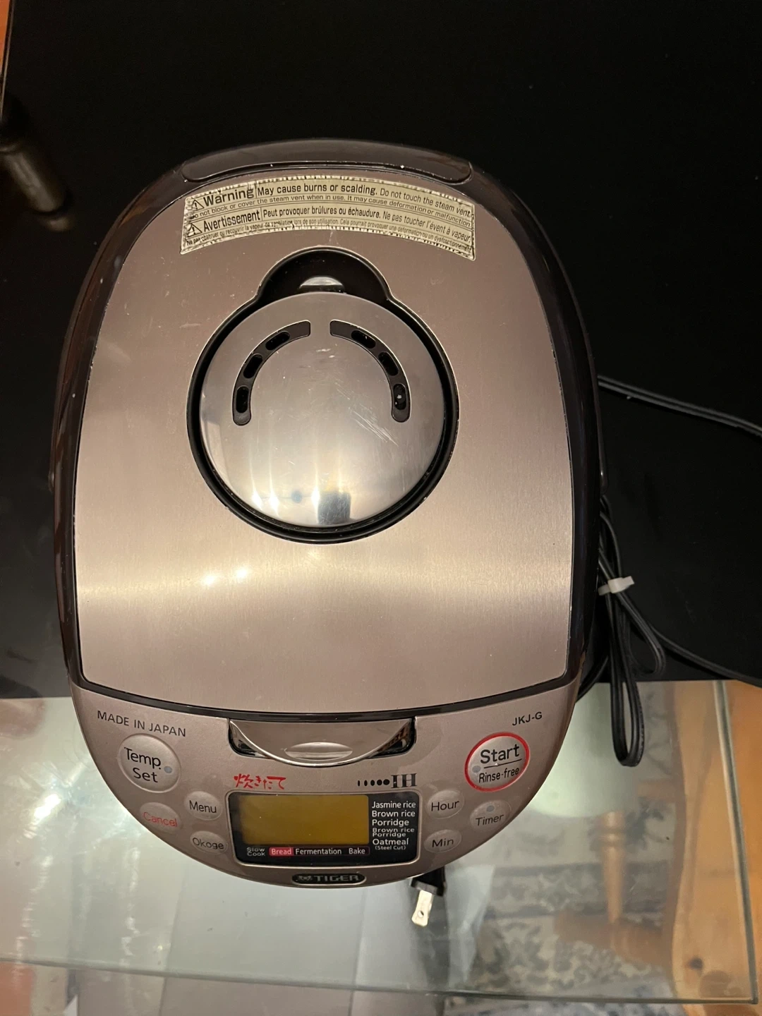 10Selling a Tiger JKJ-G rice cooker. It's in good working condition and ready to make some delicious rice! It has settings for various types of rice, including jasmine and brown rice. It also has a bread fermentation and bake function. Made in Japan