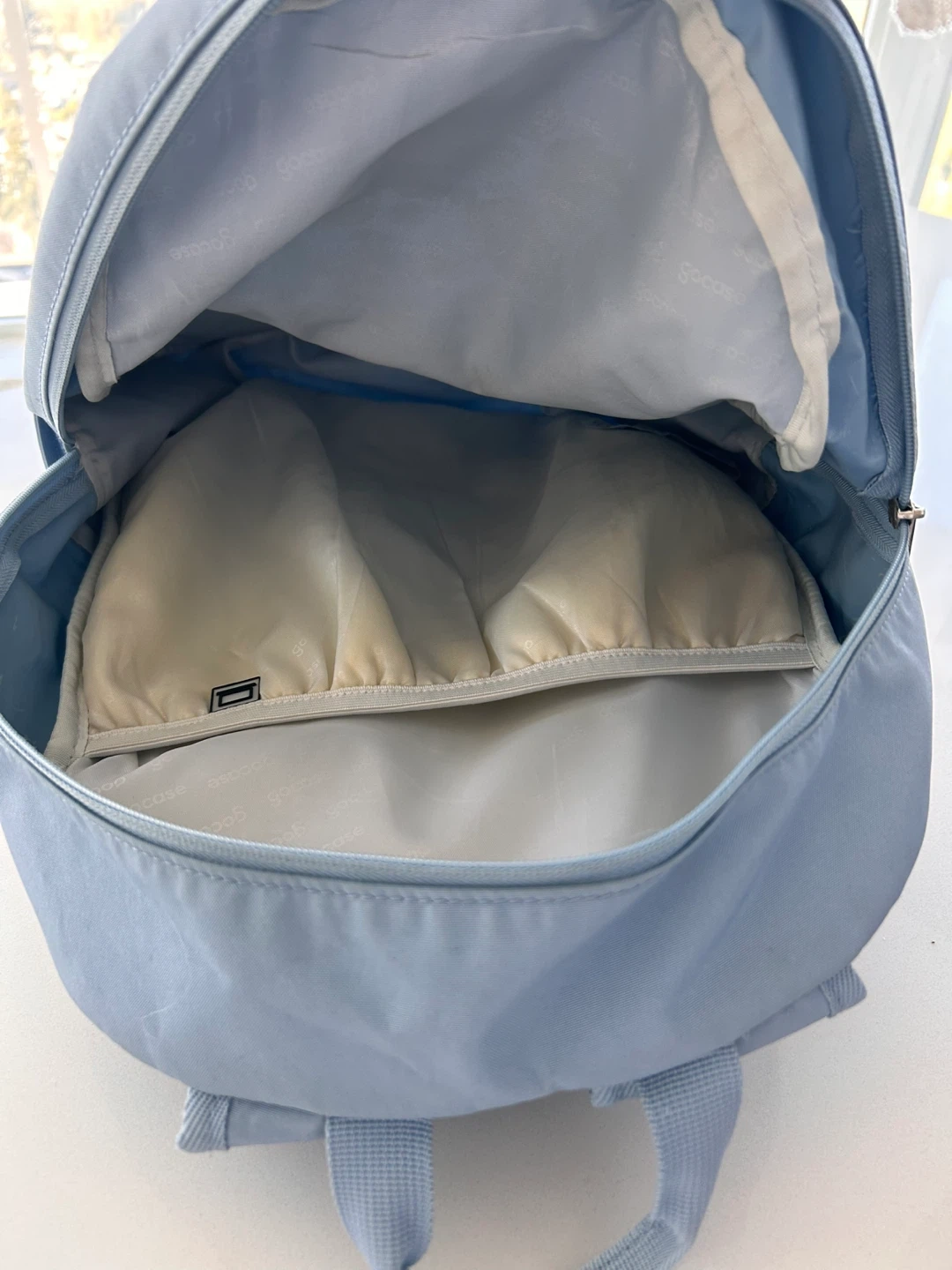 - The main zipper was repaired at home. It works fine for light/medium loads but should not be forced or overstuffed.
