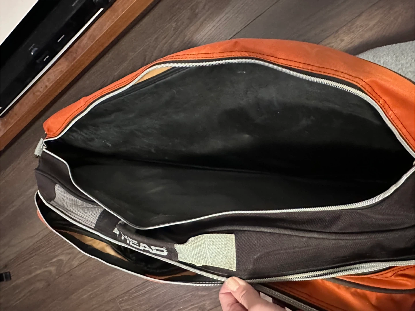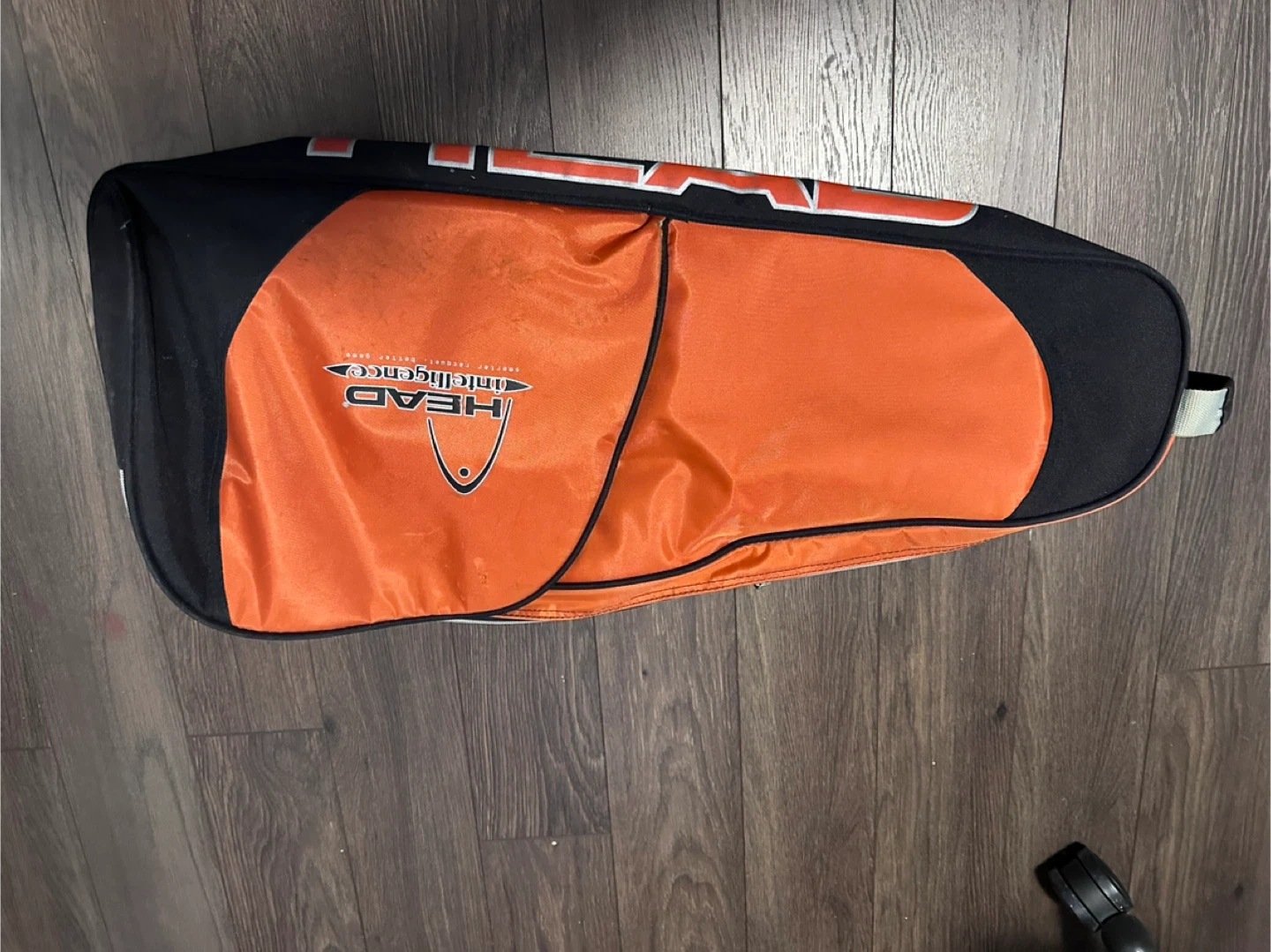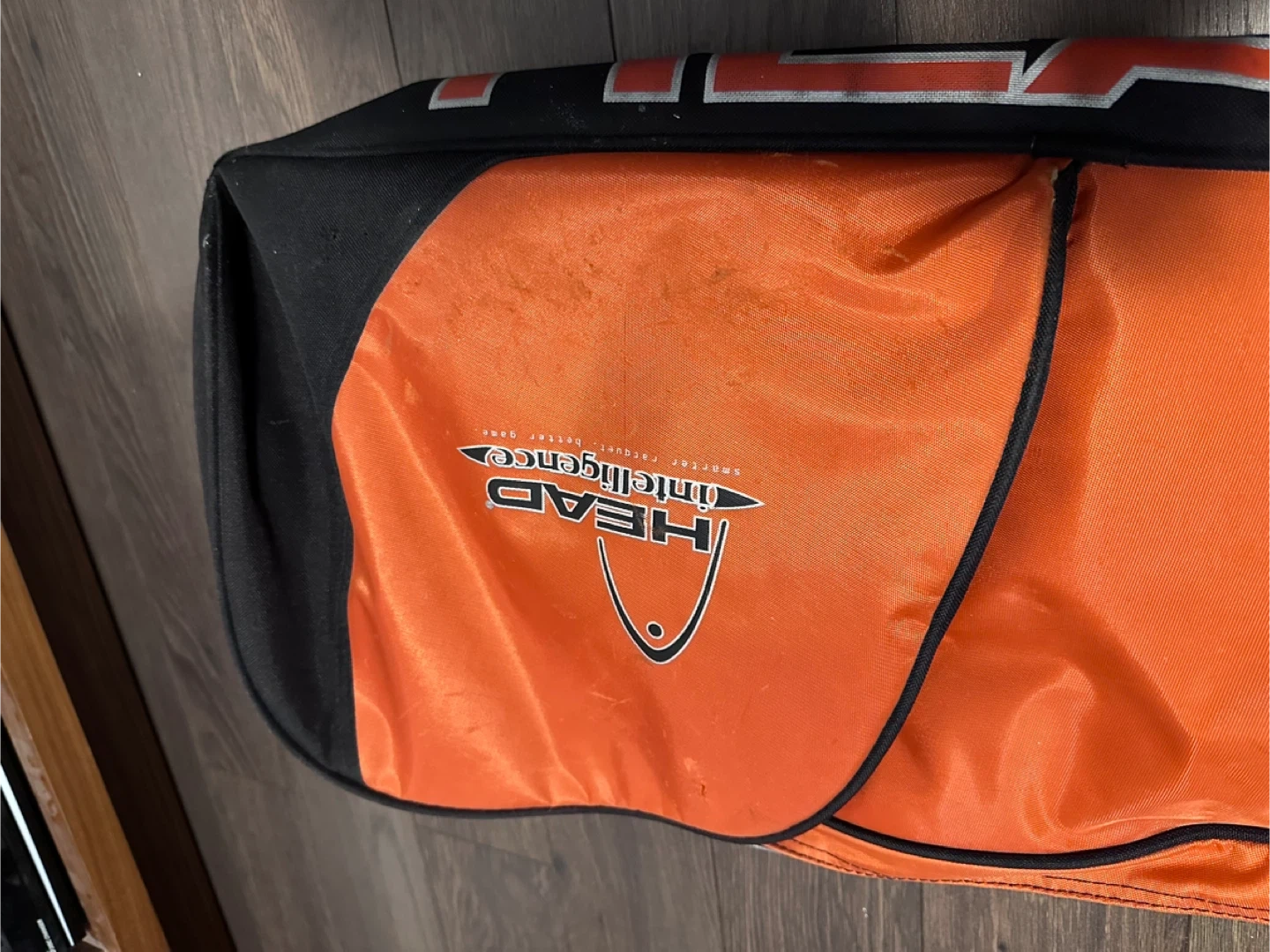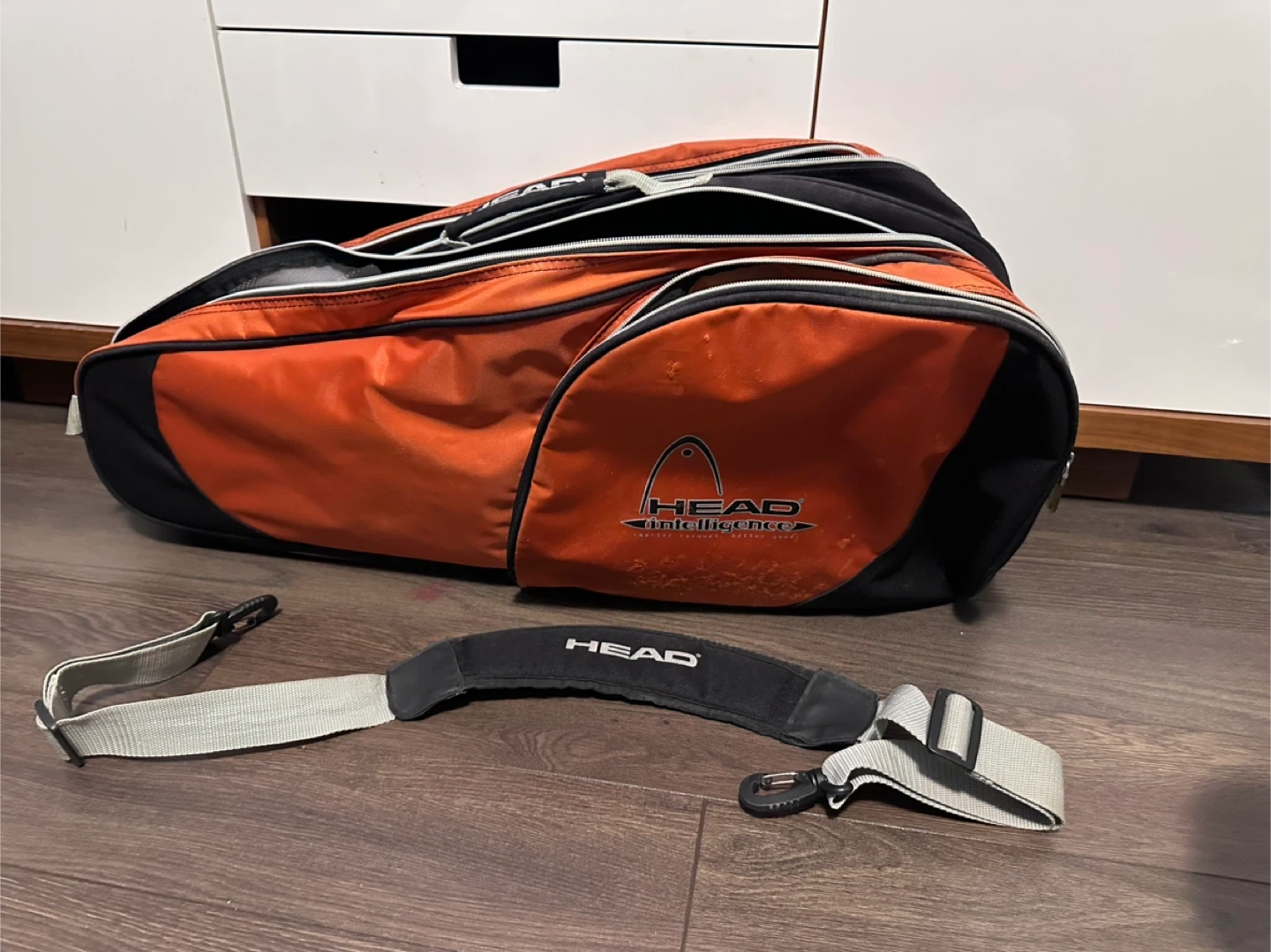 This HEAD tennis bag is designed for carrying your sports gear. It features multiple compartments for organization. The detachable shoulder strap makes it easy to carry. Used condition with some wear and tear signs.