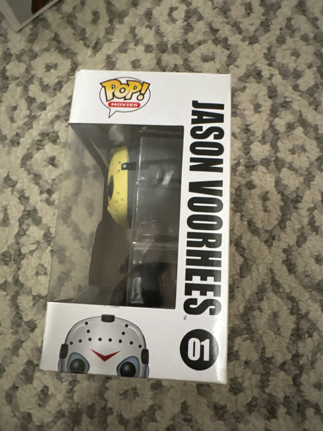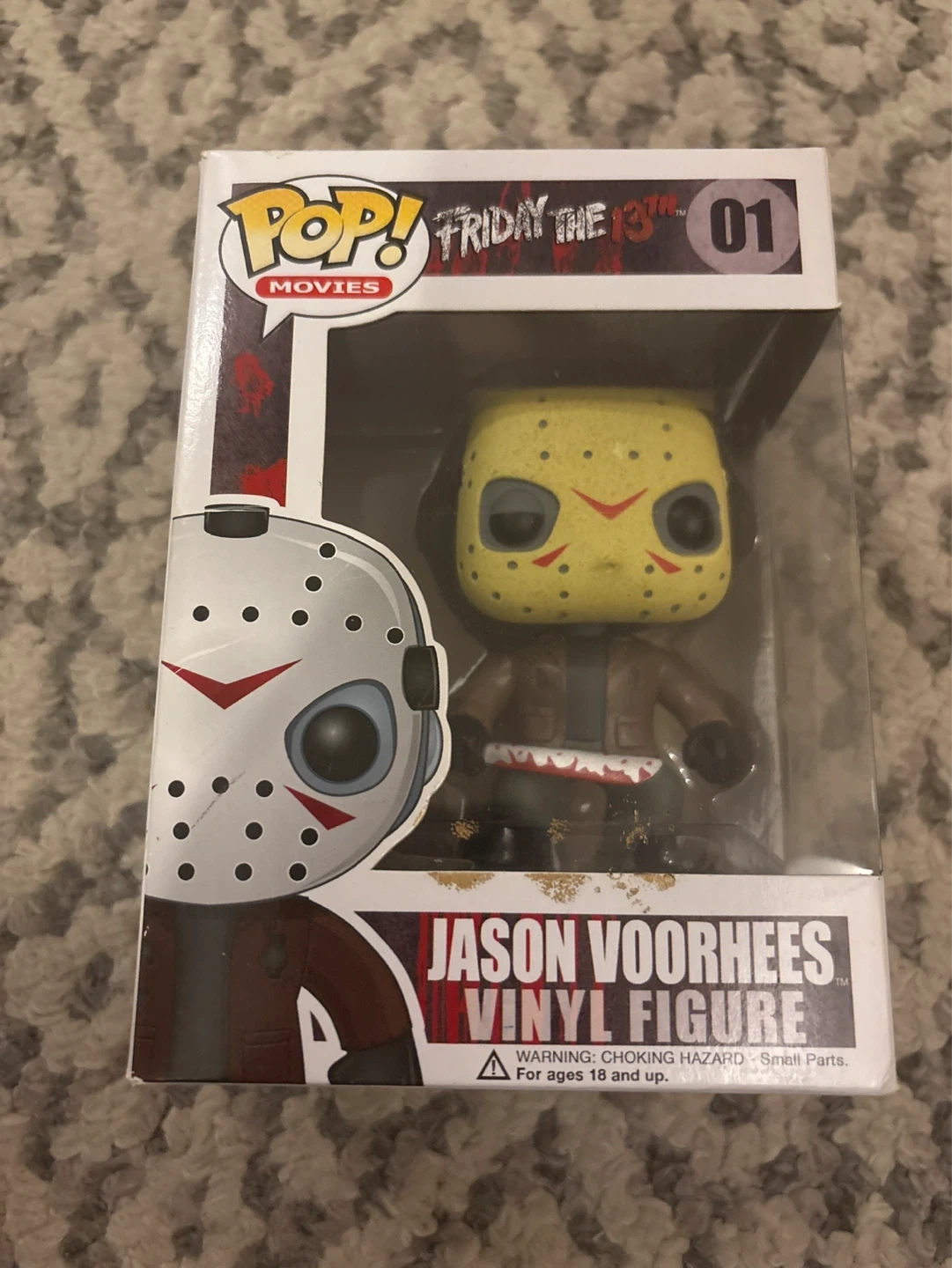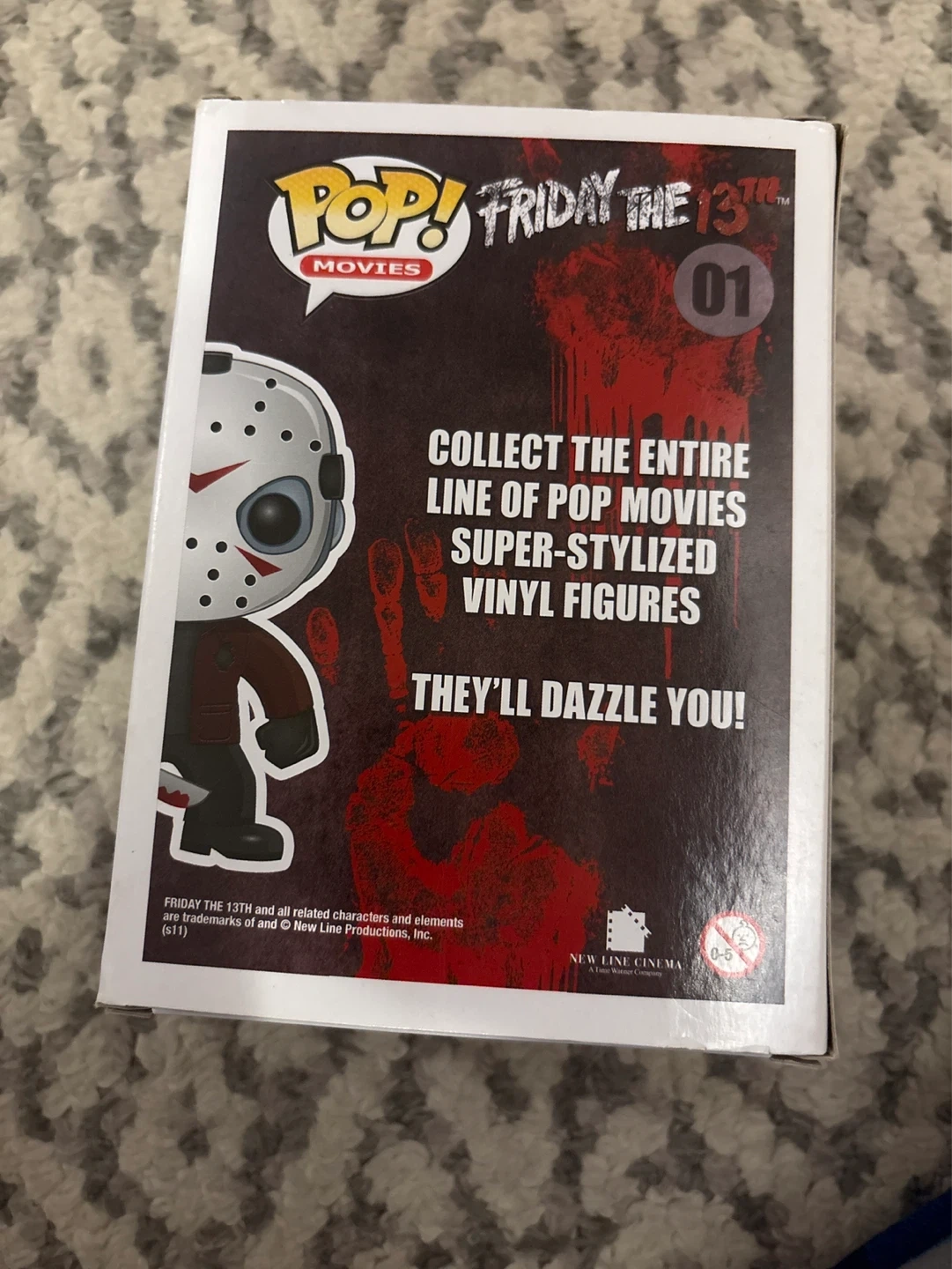 This is a Funko Pop! Movies vinyl figure of Jason Voorhees from Friday the 13th, number 01. It comes in its original box. It's a must-have for any horror fan's collection!