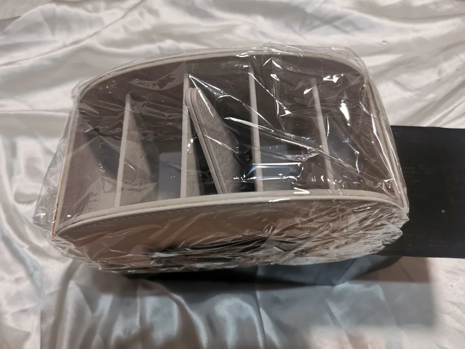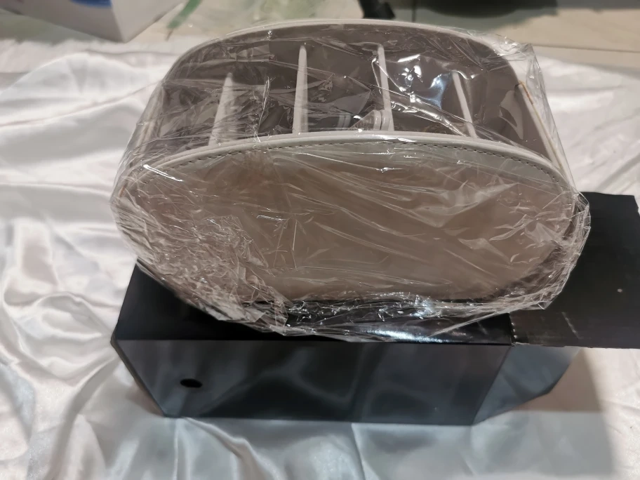 White PU leather desk organiser. Multiple compartments. Great for remotes, makeup, pens, and more. New in box.