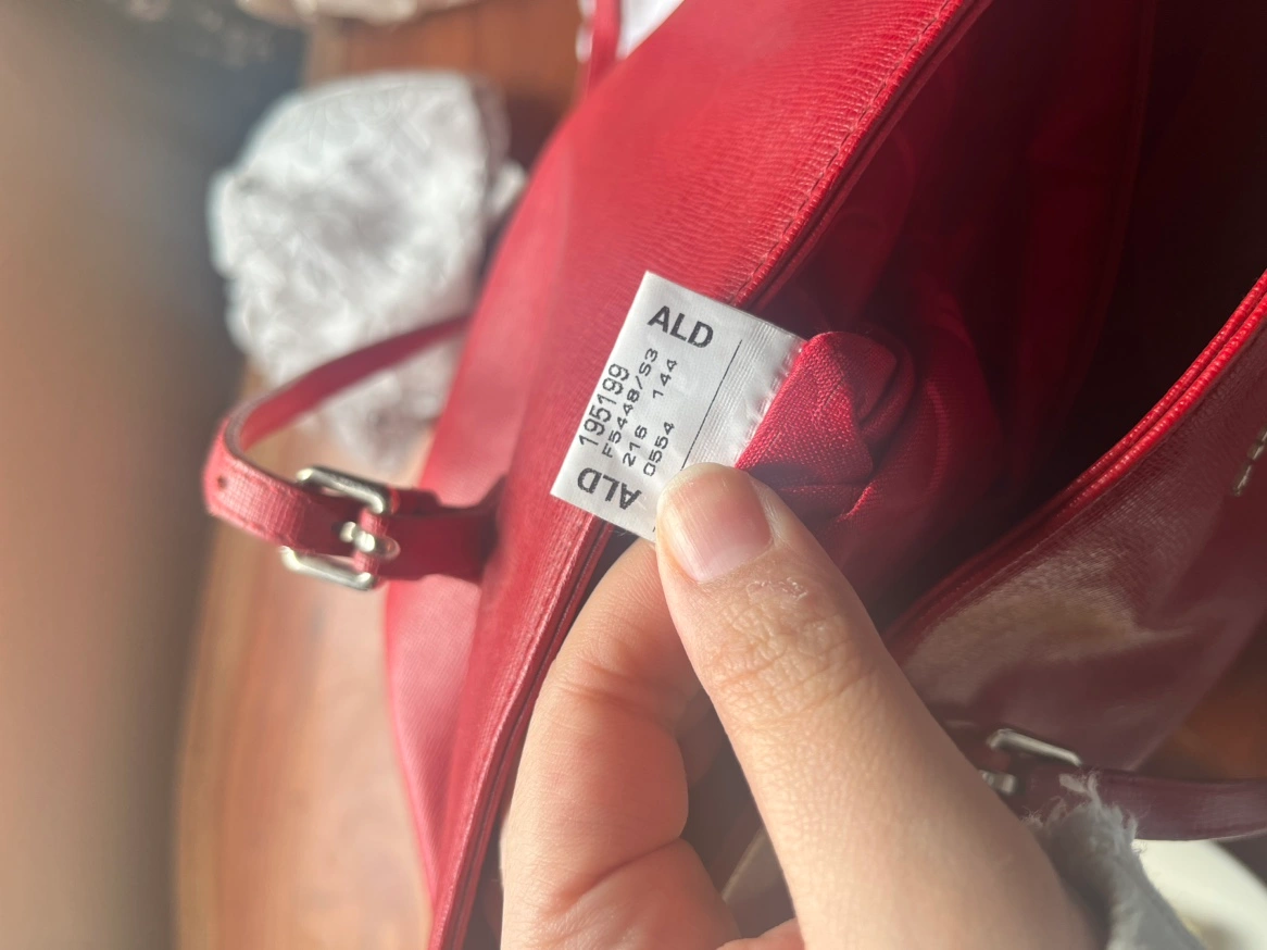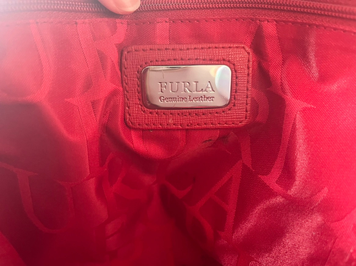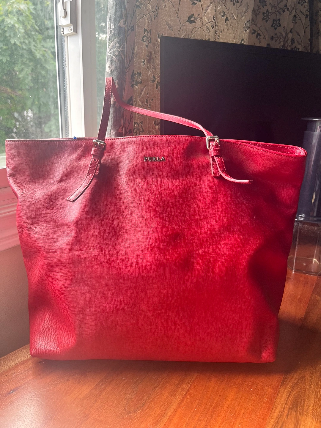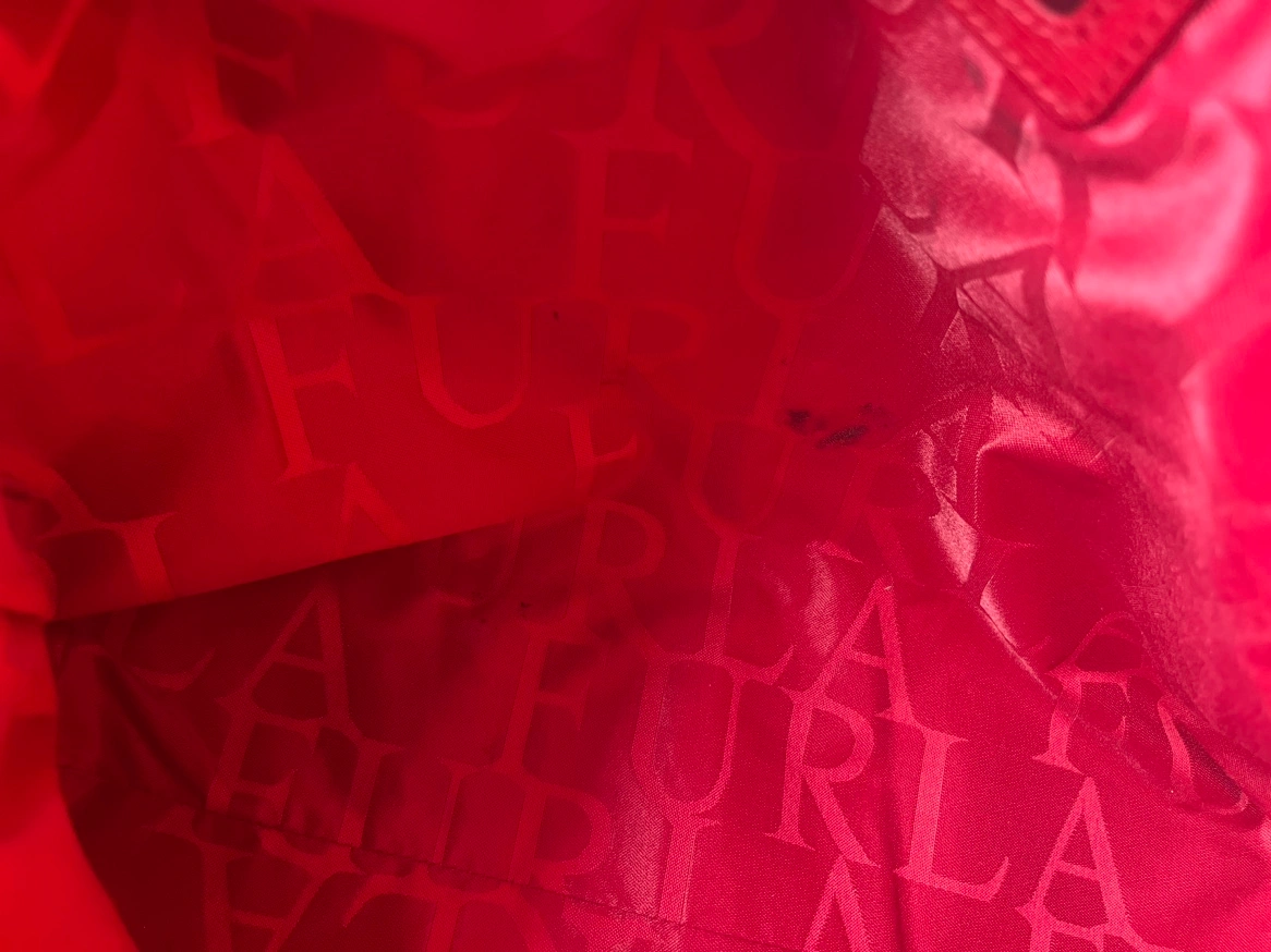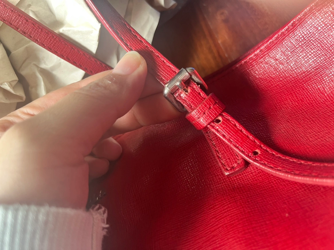 Small ink stain in the interior lining. Also some light wear on one of the straps.