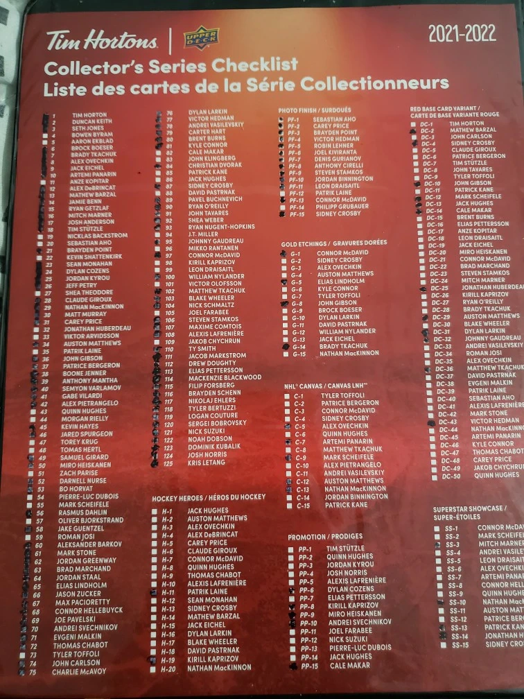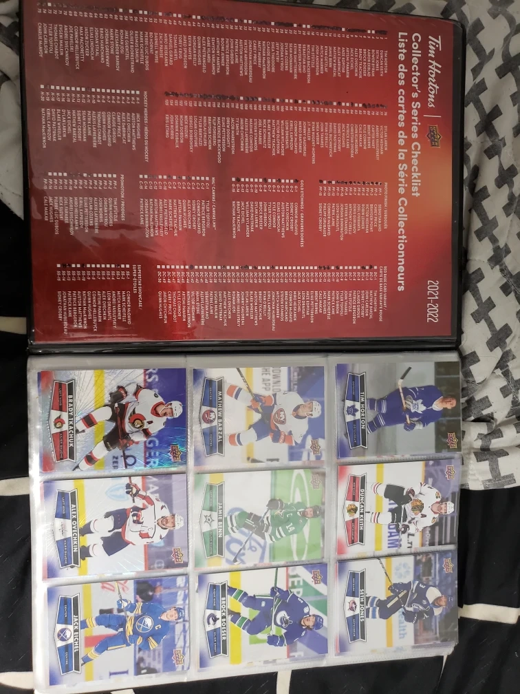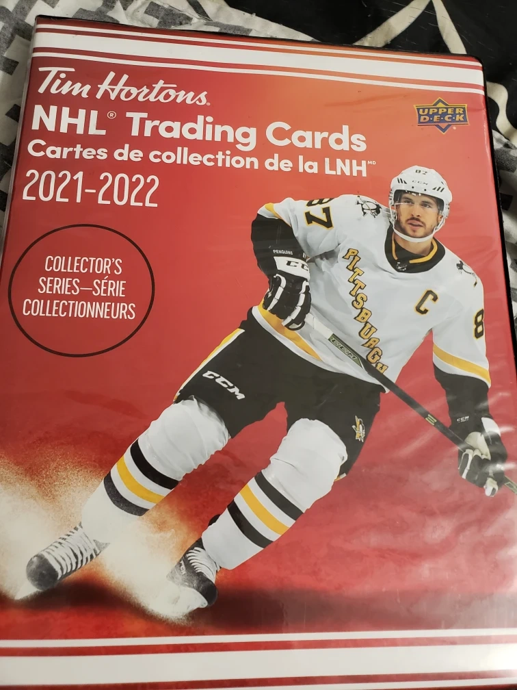 65Selling a Tim Hortons 2021-2022 NHL Trading Cards Collector's Series binder. It's filled with various hockey cards from the 2021-2022 season, including some featuring Connor McDavid and other notable players. Great for any hockey card collector!