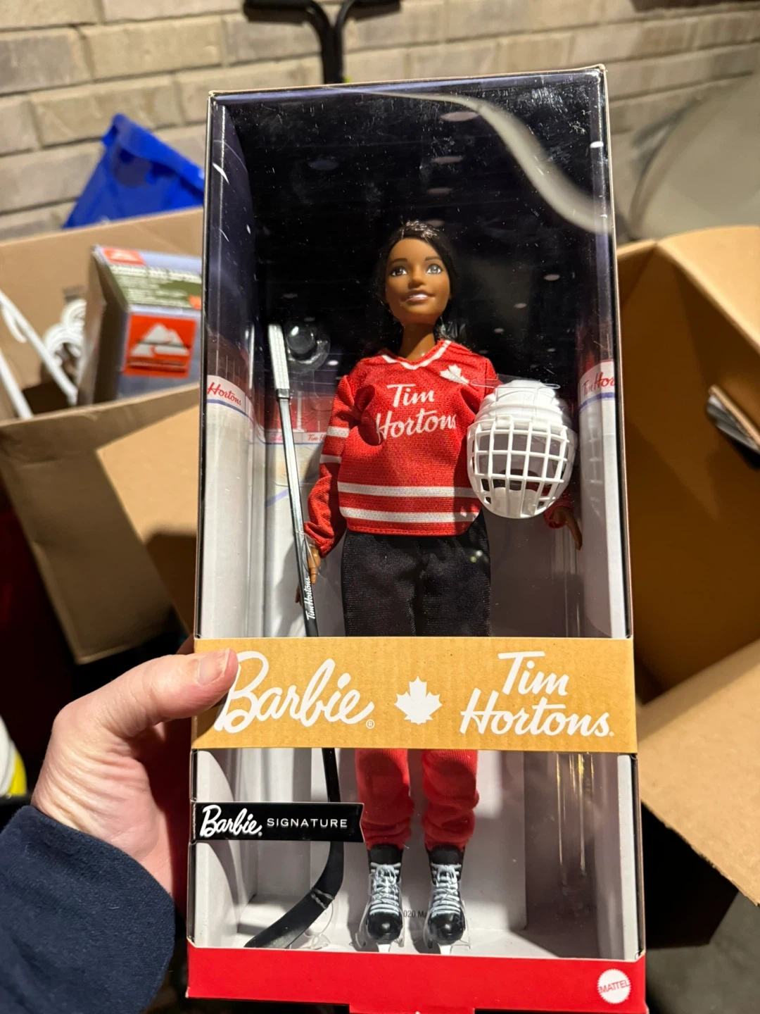 75Selling brand new, in-box Tim Hortons Barbie dolls!They are really cute dolls wearing a Tim Hortons hockey jersey and comes with a hockey stick and helmet. Great for collectors or as a gift for a Barbie or hockey fan. Asking $30 each.