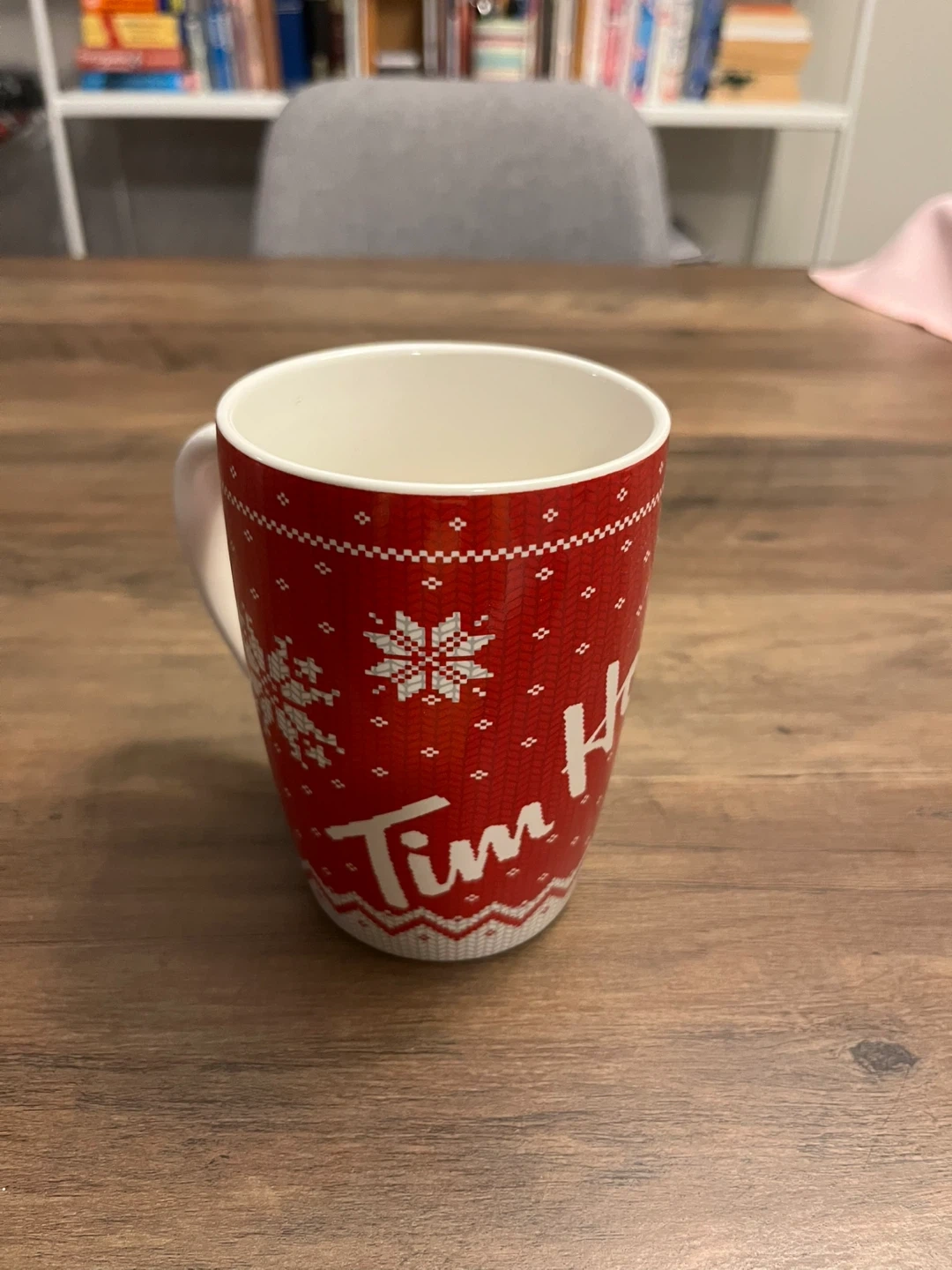 676Selling a Tim Hortons limited edition Christmas mug! It's in great condition and features a festive red and white design with snowflakes. Perfect for enjoying your morning coffee or tea!