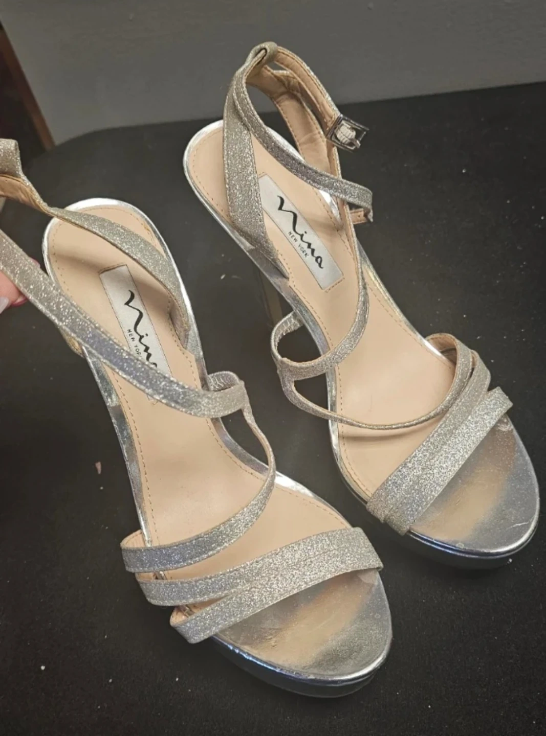 Nina New York Silver Glitter Strappy Heels - Size 8.5