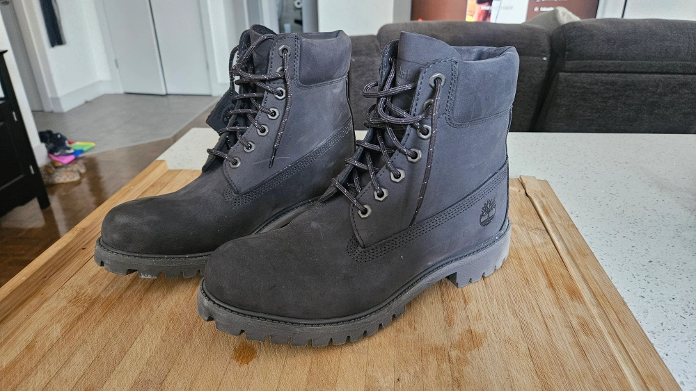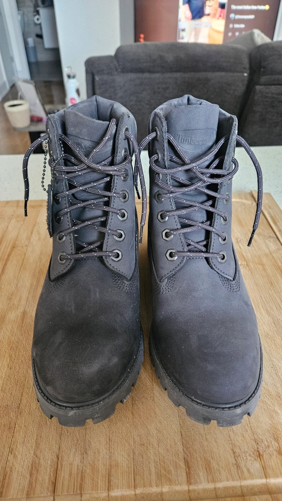 81Worn once! Men's Timberland 6-inch Premium boots. Gray. Lace-up closure. Good condition. Size US Men's 8.5.