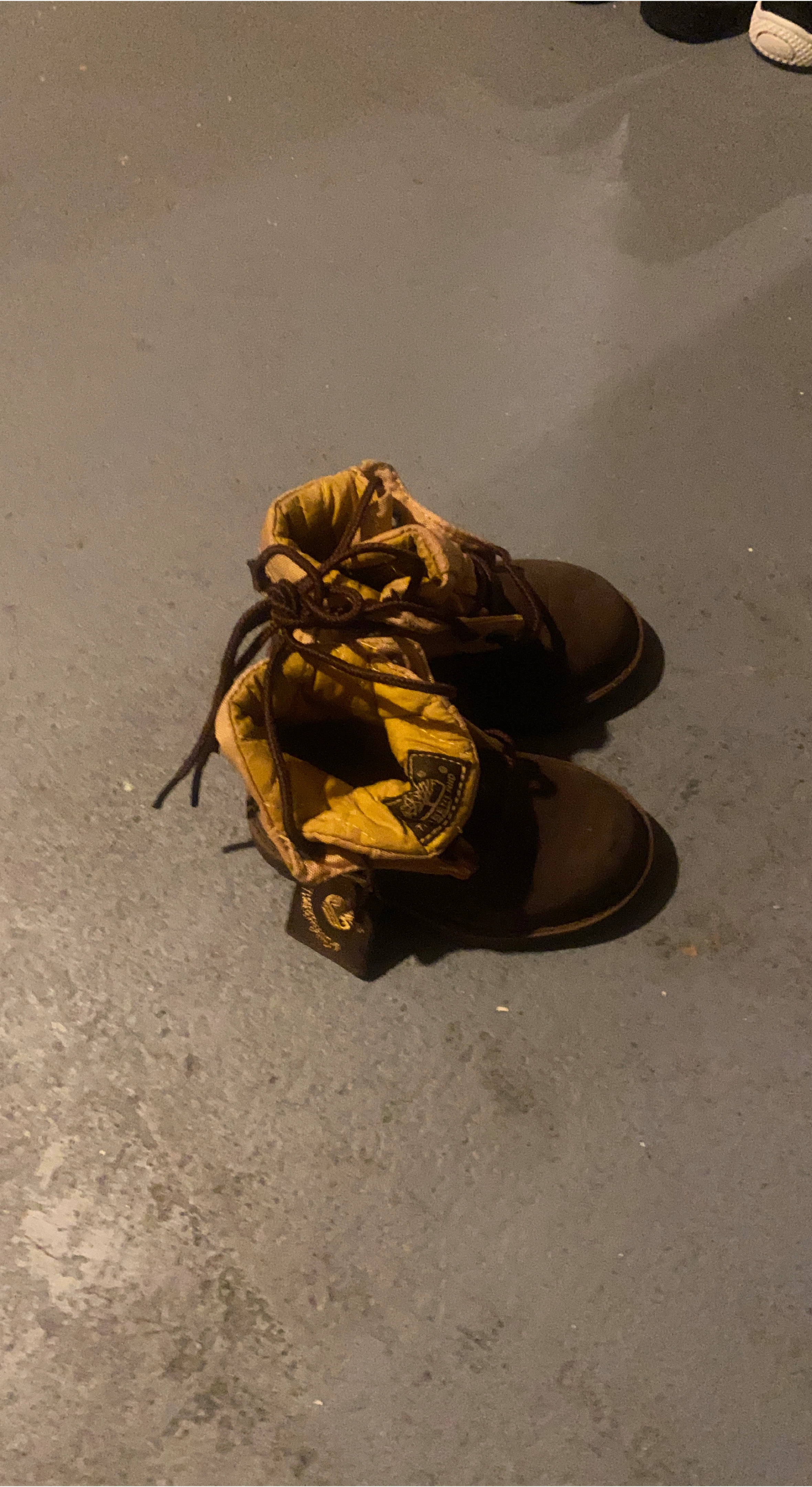 18Selling a pair of Timberland boots in brown. They look like they've been worn, but still have lots of life left in them!