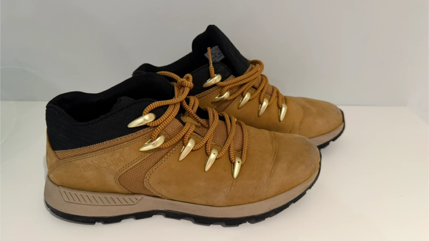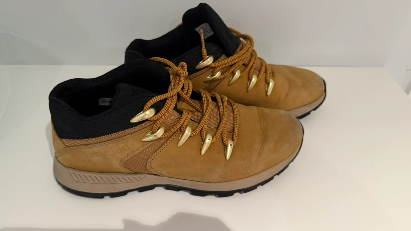 Selling a pair of Timberland ankle boots in good condition! They're a nice brown leather and are a US size 7.5. These boots are perfect for everyday wear and have a stylish look with the gold accents on the laces.