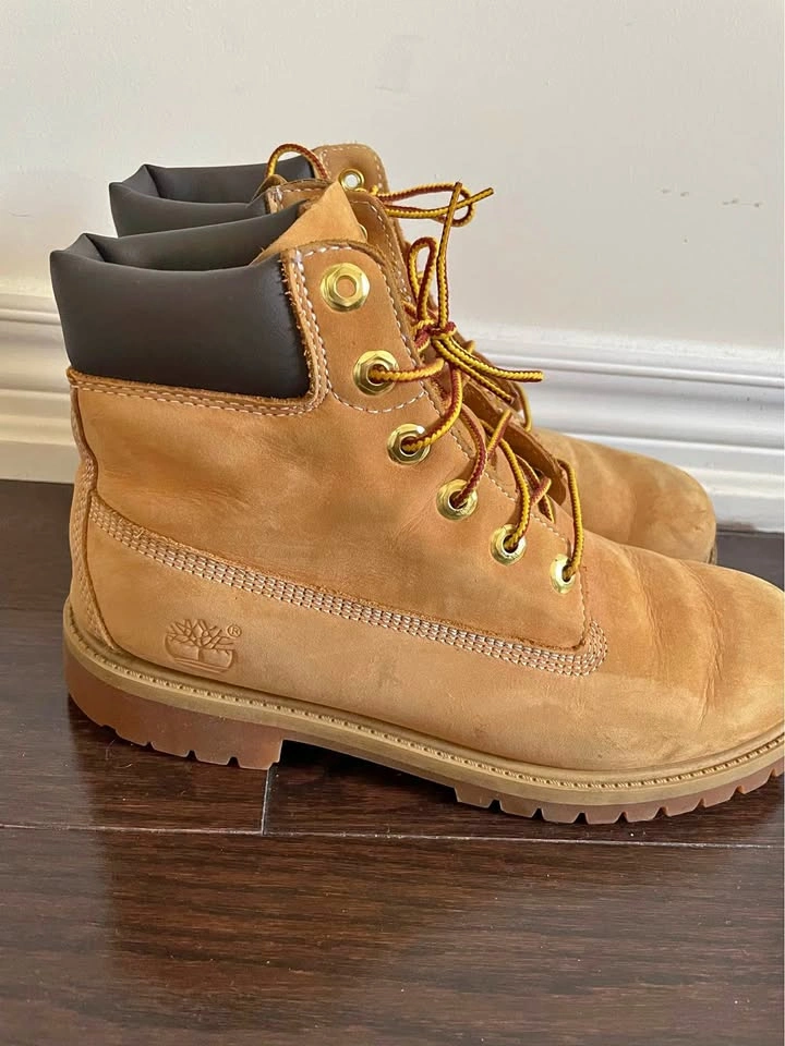 Timberland Classic 6” Premium Waterproof Boots in wheat nubuck, size US 6.5 Men US 9 Women / EU 39.5 Made from premium waterproof leather with a durable rubber sole, these boots are in excellent condition and offer both comfort and iconic style.