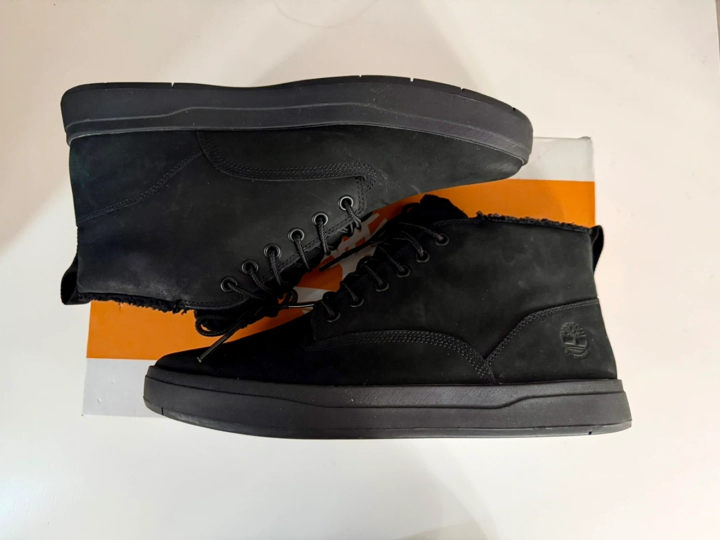 65Selling a pair of Timberland Davis Square Warm Lined Chukka Black Nubuck boots in size 11. These are a stylish and comfortable choice for everyday wear. The boots are black nubuck and come with the original box.