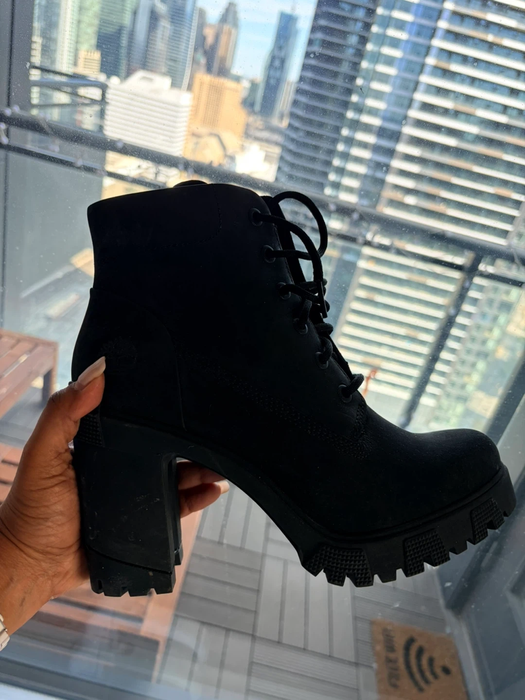 26Selling a pair of Timberland Lana Point 6 Inch Lace-Up boots in black nubuck! These stylish boots are a women's size 9 (M/M). They feature a chunky heel and lug sole, perfect for adding a bit of edge to any outfit. Originally bought for $150