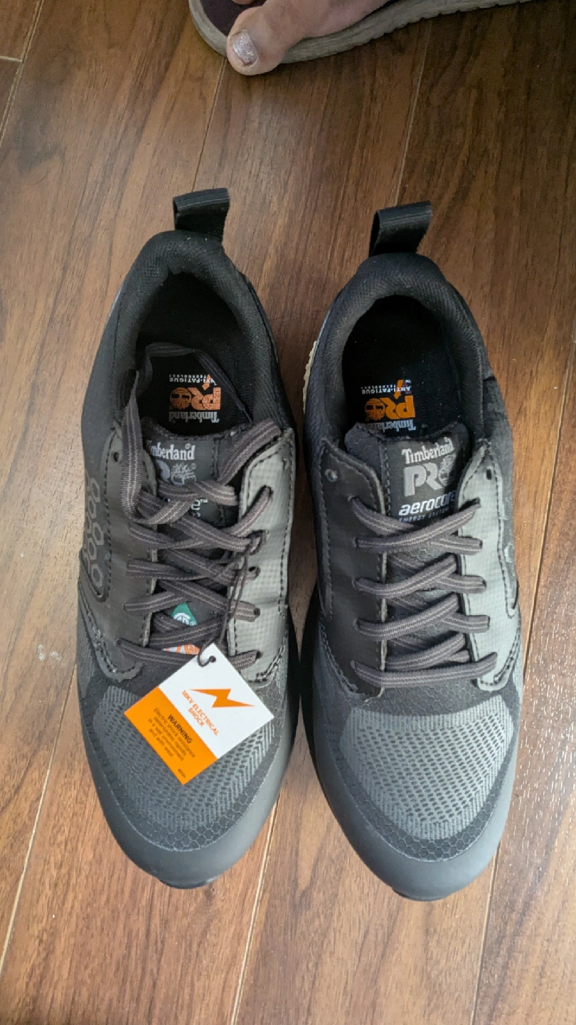 10Timberland PRO series men's work shoes in black. Featuring Aerocore technology for lightweight comfort and flexibility. Alloy safety toe for protection on the job. In great condition and ready for a new home!