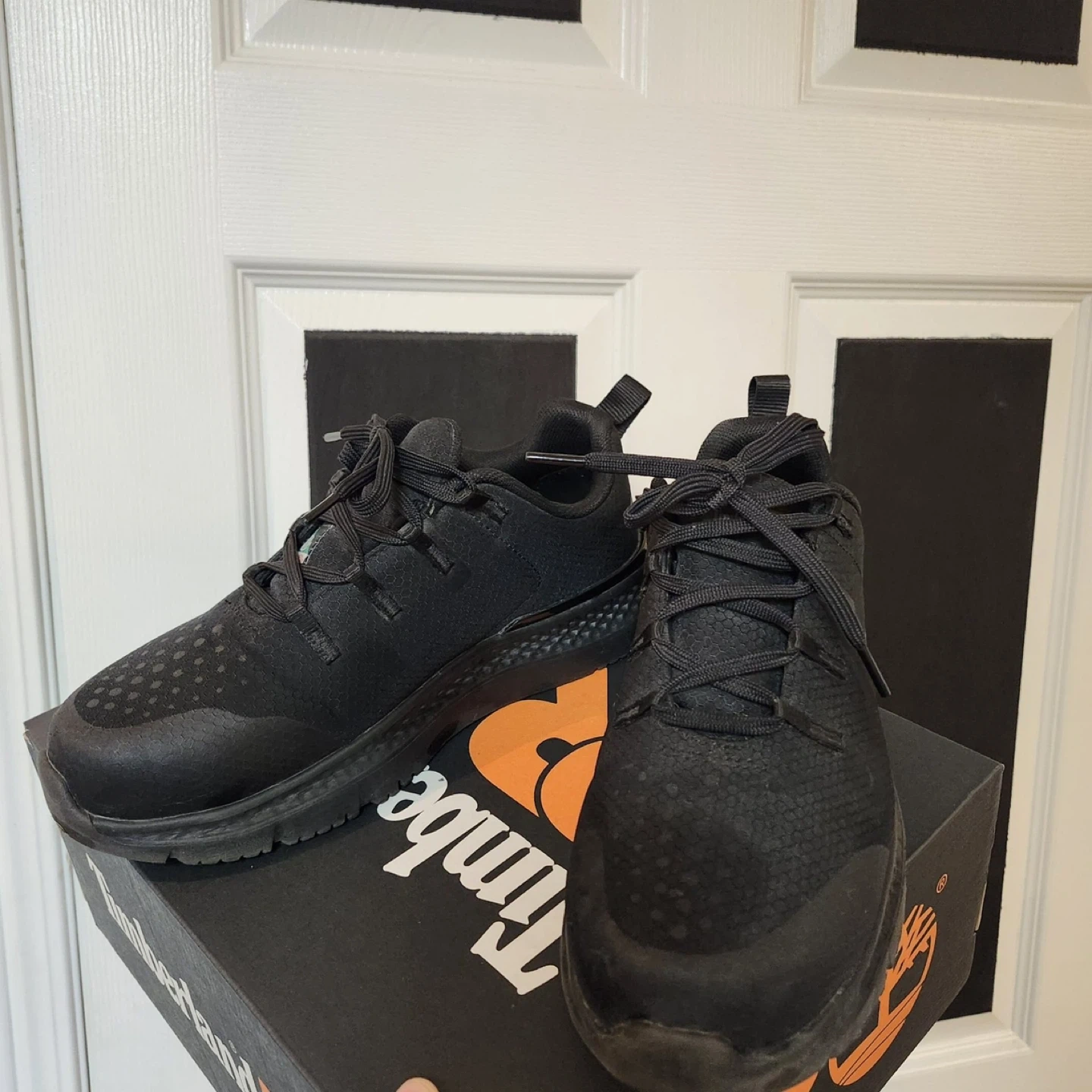 24I'm selling a pair of Timberland Men's Powertrain Alloy Toe Work Shoes in black. They are in great condition and come with the original box. Size 8