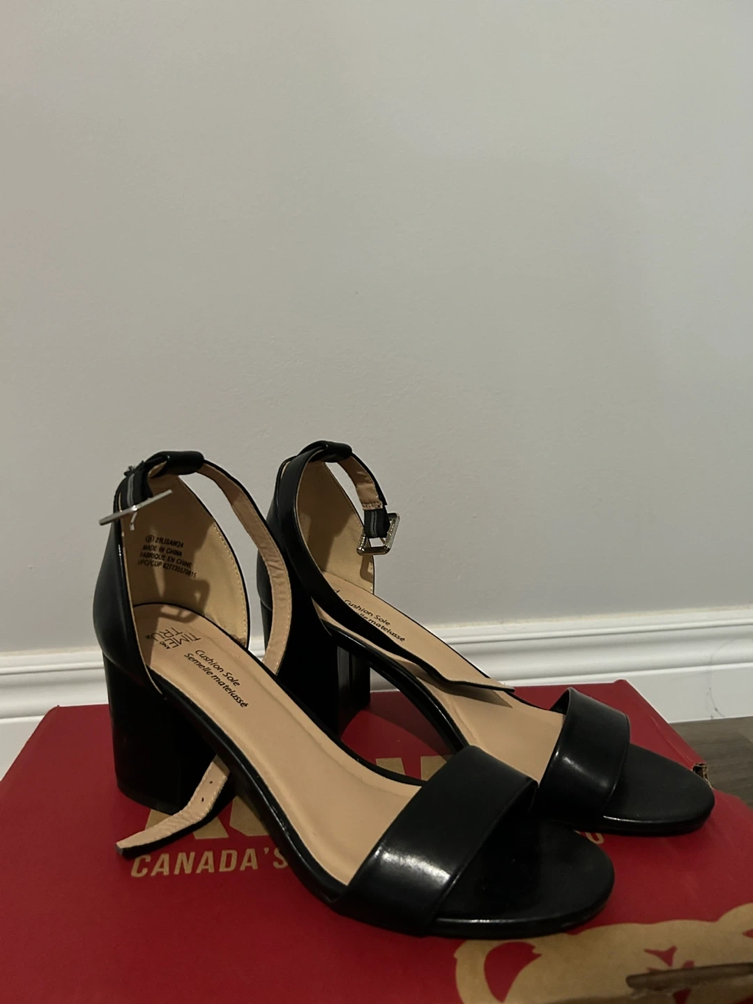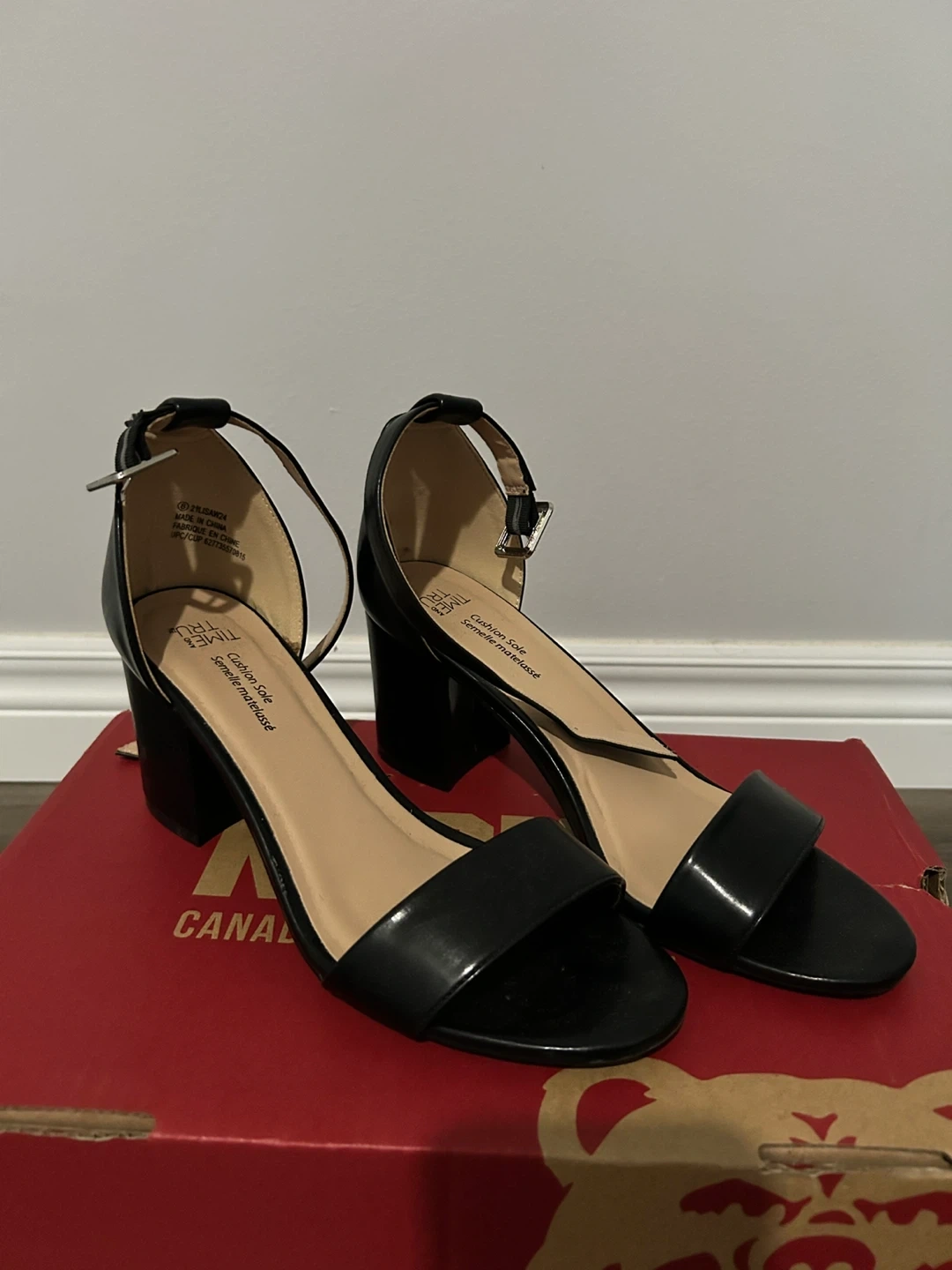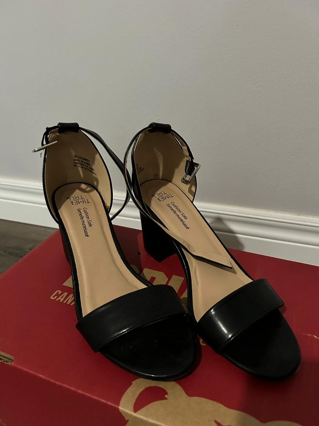 These Time and Tru size 8 black heels are in great shape! Perfect for dressing up or down. Just made a few small holes on the straps, but they're really comfortable!