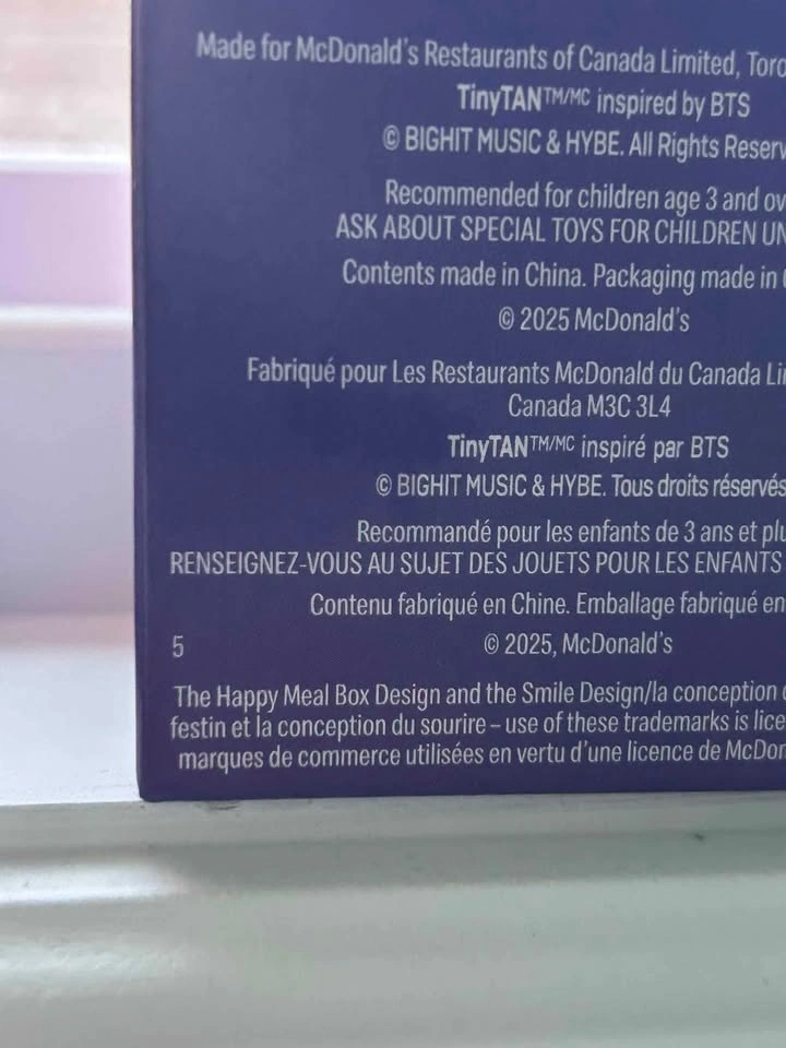65My daughter is selling her duplicate TinyTAN BTS McDonald’s toys. All are new, only opened to take pictures. Available: #1 RM ×2 #2 Jin ×1 #3 Suga ×1 (SOLD) #4 J-Hope ×2 #5 Jimin ×1 (SOLD) $5 each Open to trade for the ENCORE set West Hamilton Mountain (near Mohawk Rd & Rice Ave)