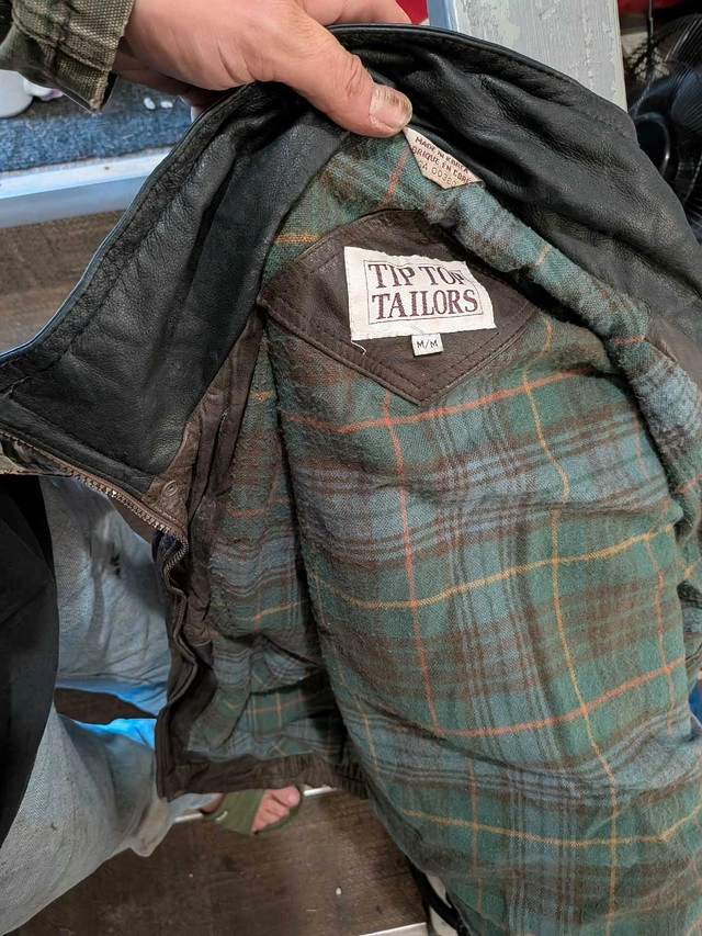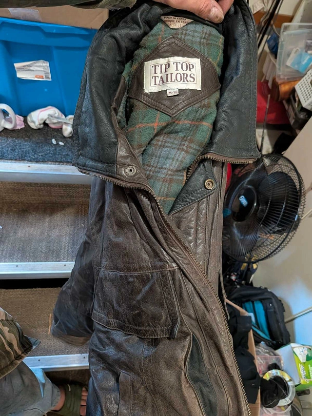 This is a Tip Top Tailors leather jacket, perfect for cooler weather. The jacket is in good condition, showing some signs of wear, which gives it a unique, vintage look. The jacket features a robust leather exterior with a comfortable plaid lining. Key features include: * Durable leather construction * Plaid inner lining * Classic design I've checked online on sites such as Kijiji and Ebay and similar leather jackets typically sell between $75 and $150, depending on the condition and brand. Given the brand and condition, I've priced it at $85. And yes, since you're wondering, if the ad is up, it's still available!