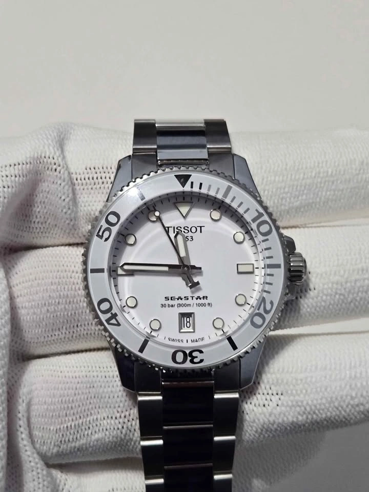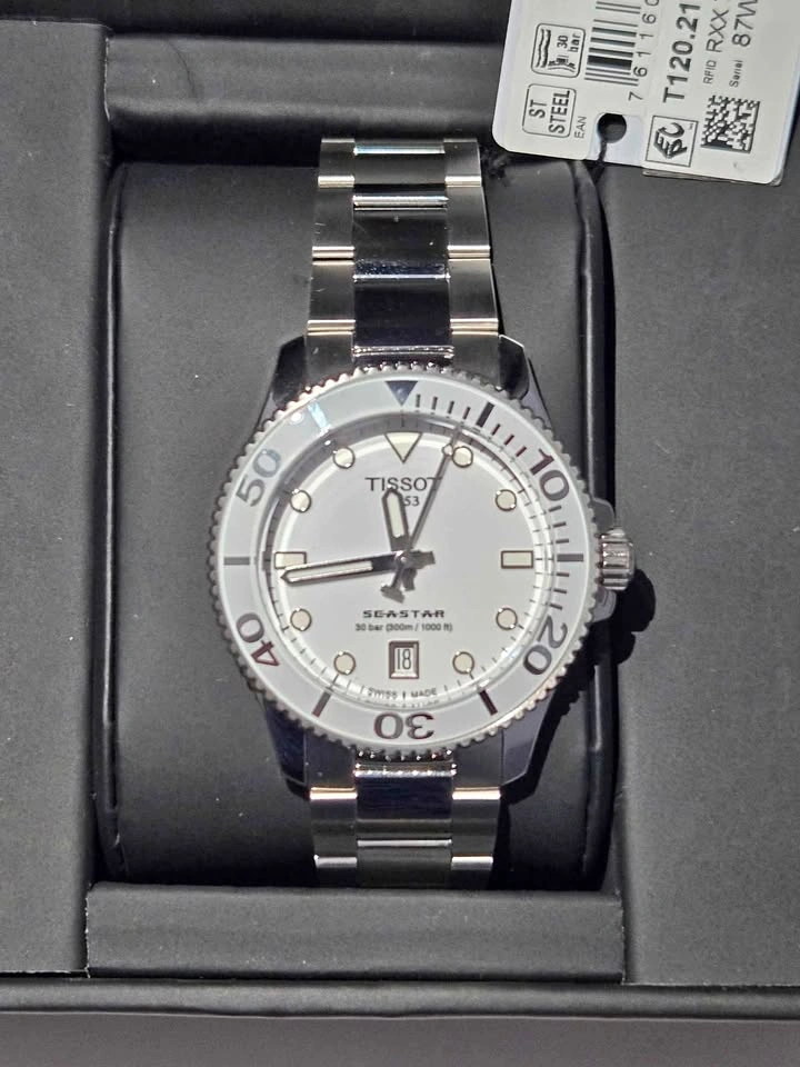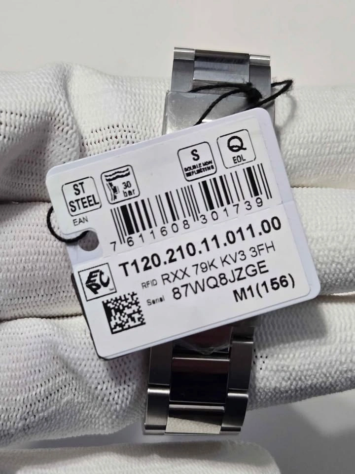 121New with tags, no original box and paper but comes in a leather show box. Reference: T1202101101100. Collection: T-Sport. Gender: Unisex. Movement: Quartz. Water resistance: 30 bar (300 m / 1000 ft) . Case material: Stainless steel. Case size: 36mm. Pickup in Mississauga