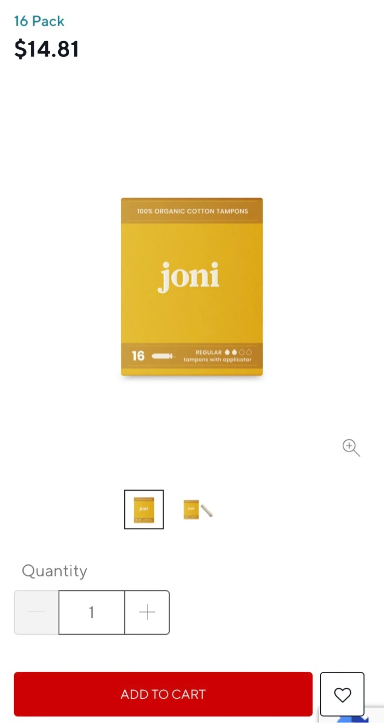 Joni 16 Pack Regular Organic Cotton Tampons