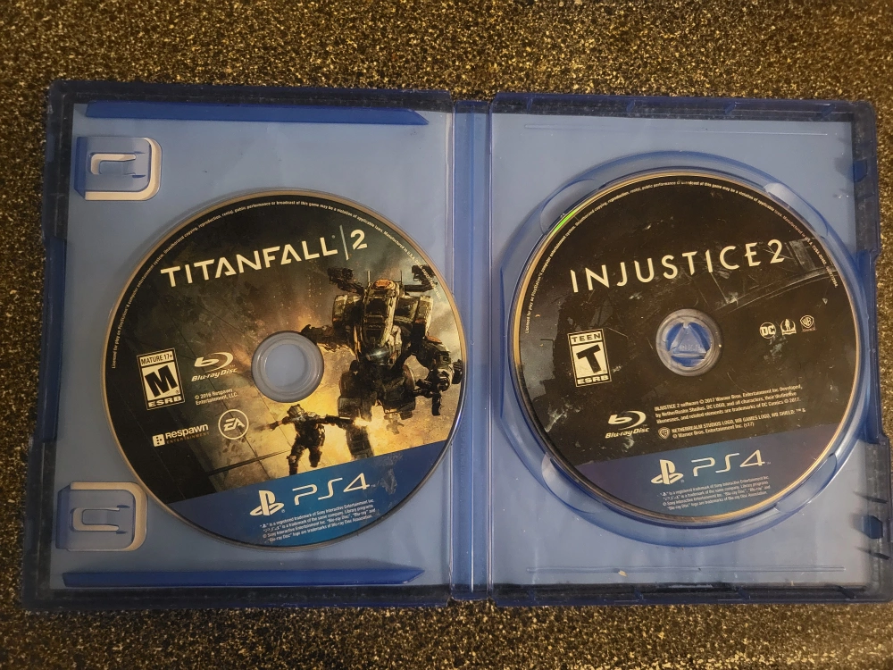 two PS4 games together: Titanfall 2 and Injustice 2. Both games are in good condition and ready for a new player!