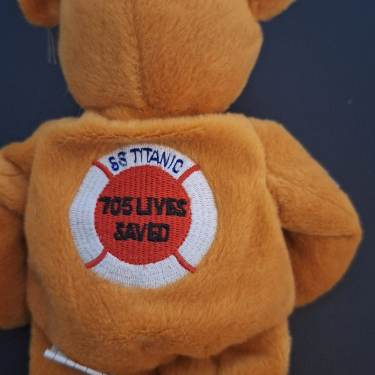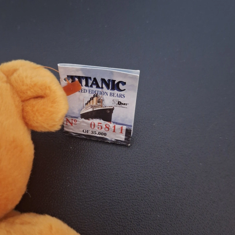 Selling a limited edition Titanic Beanie Bear! This adorable bear is a commemorative piece, with 'SS Titanic 705 LIVES SAVED' embroidered on its back. It's number 05811 of 35,000, making it a special collectible