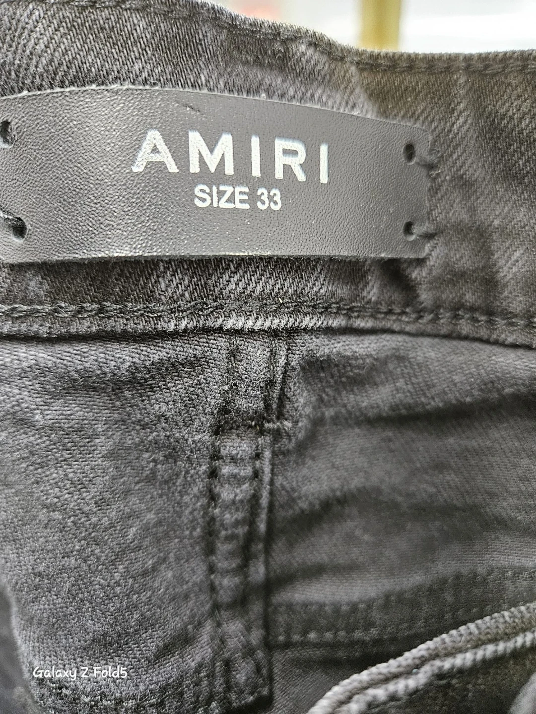 Selling a pair of Amiri jeans in size 33. They have a cool, distressed look with unique detailing. Great for adding some edge to your wardrobe!